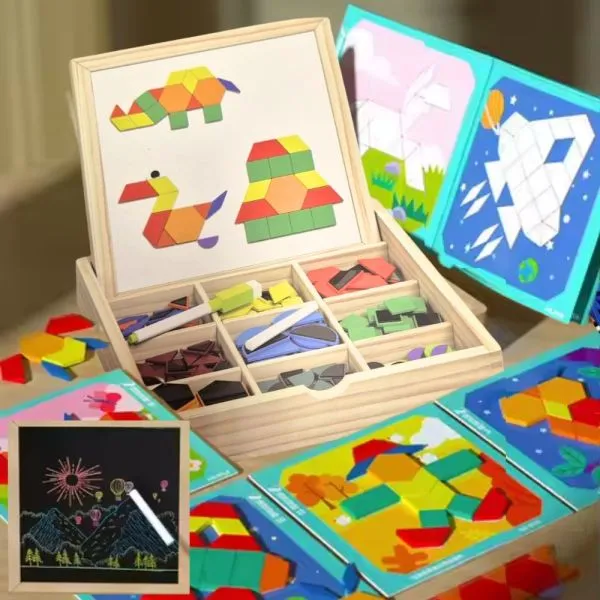 Puzzle magneti: Uključeni raznovrsni magnetni oblici koji potiču maštu i pomažu u učenju oblika i boja.