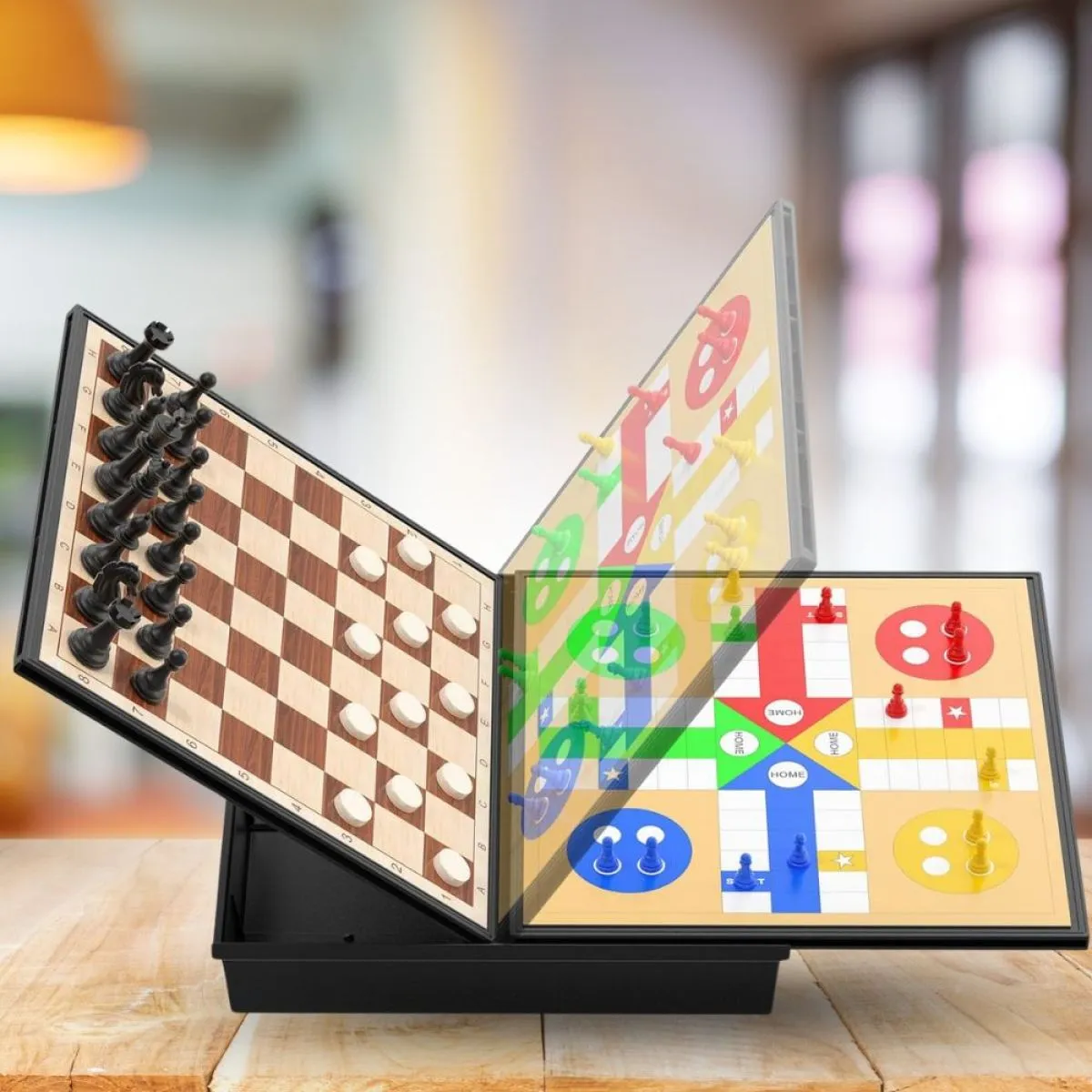 Ovaj praktičan 2-u-1 magnetni set donosi dvije omiljene društvene igre – šah i Čovječe ne ljuti se – u jednom kompaktnom pakiranju. Savršen za djecu, početnike i obitelji u pokretu.