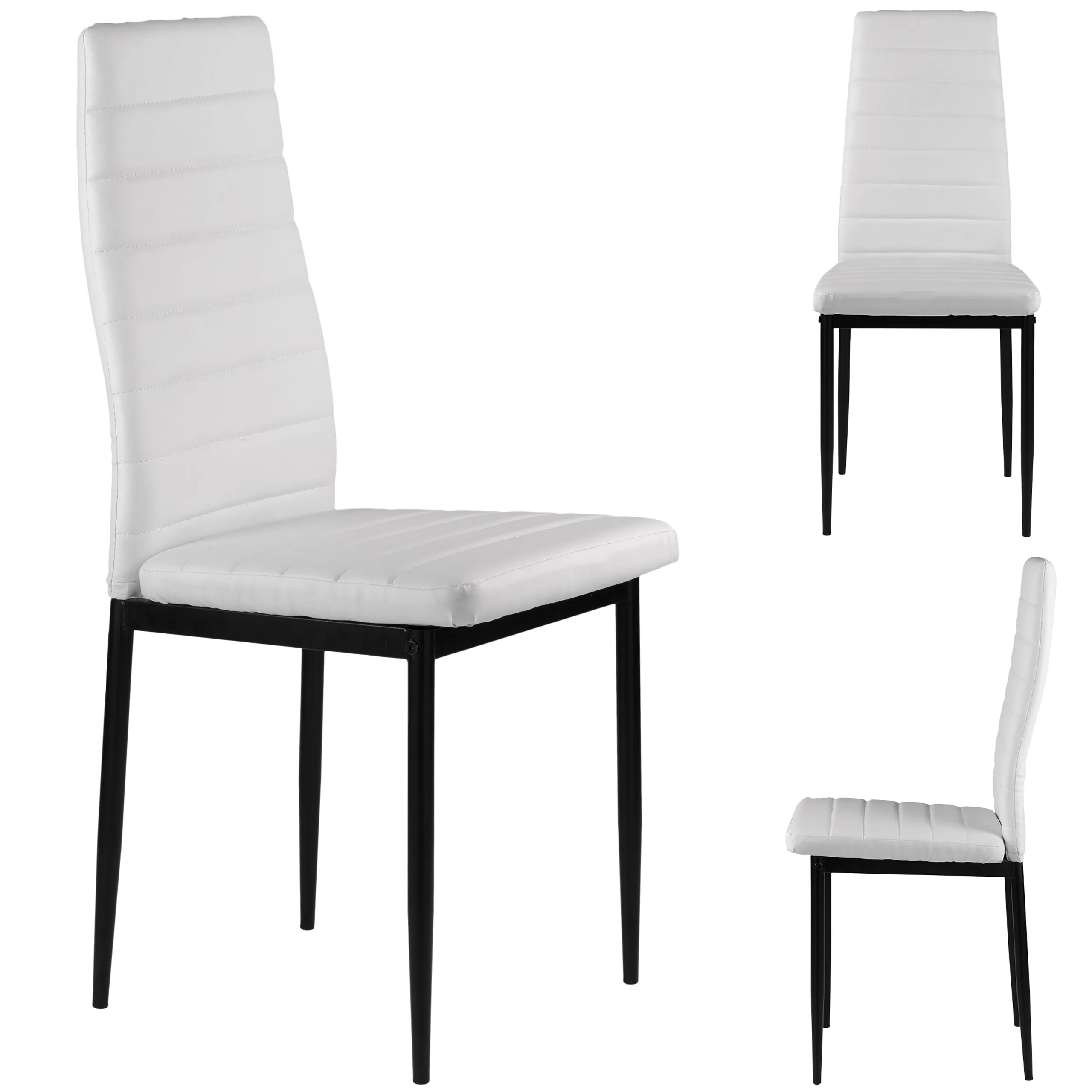 ✔PRAKTIČNOST - odgovarajuće profiliran visoki naslon i ispuna od visokokvalitetne PU pjene. ✔ DIZAJN - bijele boje stolica čine ih vrlo elegantnim i modernim. ✔ LAGANO ČIŠĆENJE - presvlake stolica su izrađene od eko kože, tako da se mogu brzo očistiti. ✔ SIGURAN POD - noge stolice s posebnim nožicama koje ne grebu ploče i parkete. ✔ STABILNOST - unatoč laganom izgledu, stolice su vrlo izdržljive, a njihova maksimalna nosivost je do 120 kg.