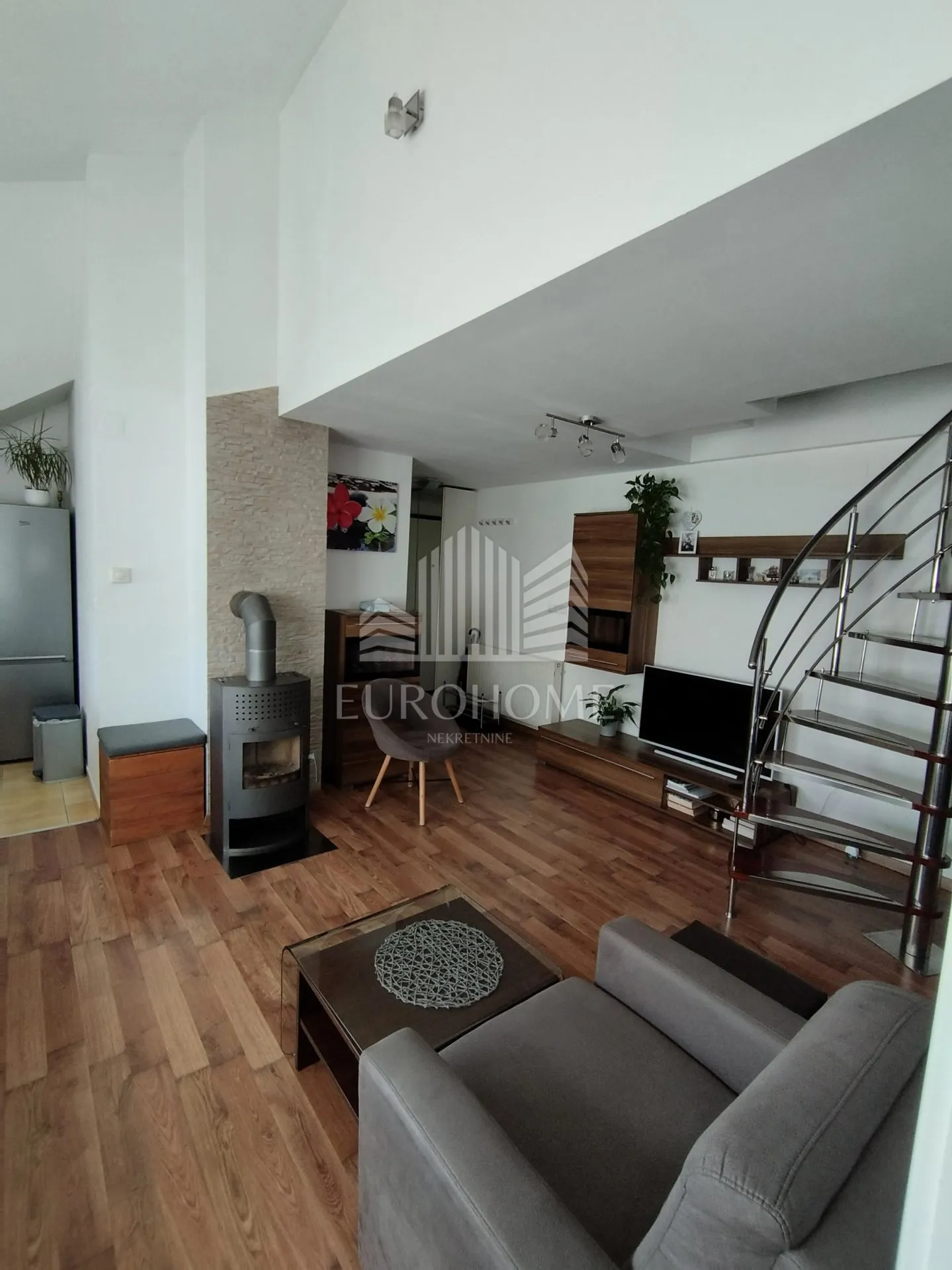 Prodaje se četverosoban stan smješten na izuzetno mirnoj lokaciji u Velikoj Mlaki, u slijepoj ulici. Svi ključni sadržaji se nalaze unutar svega 800 metara- škola, vrtić, ljekarna, ambulanta, pošta, crkva, dvije trgovine, pekara, autobusna stanica ZET-a... Odlična prometna povezanost, blizina autocesi, obilaznici i svega 5 minuta od zračne luke i Velike Gorice. Dodatna pogodnost je besplatan javni prijevoz za Veliku Goricu, autobusna stanica udaljena 200m. Stan se nalazi na drugome katu manje stambene zgrade s ukupno 6 stanova. Open space koncept pruža prostran dveni boravak povezan sa kuhinjom i zasebnom blagavaonicom. Stan se sastoji od dvije spavaće sobe, od kojih jedna ima walk-in ormar, kupaonice s WC-om te balkona. Uz stan dolaze i dva parkirna mjesta (jedno natkriveno), kao i uređeni vrt površine 30 m² s dodatnom kućicom za odlaganje, što predstavlja veliku prednost i rijetkost na tržištu. Ukupna stambena površina iznosi 72,60 m². Grijanje je plinsko etažno i dodatno ima kamin, a klima uređaji postavljeni su u dnevnom boravku i u potkrovlju. Energetski certifikat B. Ova nekretnina idealan je izbor za obitelji, ali i za sve koji traže mir, komfor i odličnu povezanost u neposrednoj blizini svih sadržaja. ID KOD AGENCIJE: 4840 Danko Rogić Savjetnik u prodaji Mob: 091 7234 625 Tel: 01 6231 365 E-mail: danko@eurohome-nekretnine.hr www.eurohome-nekretnine.hr