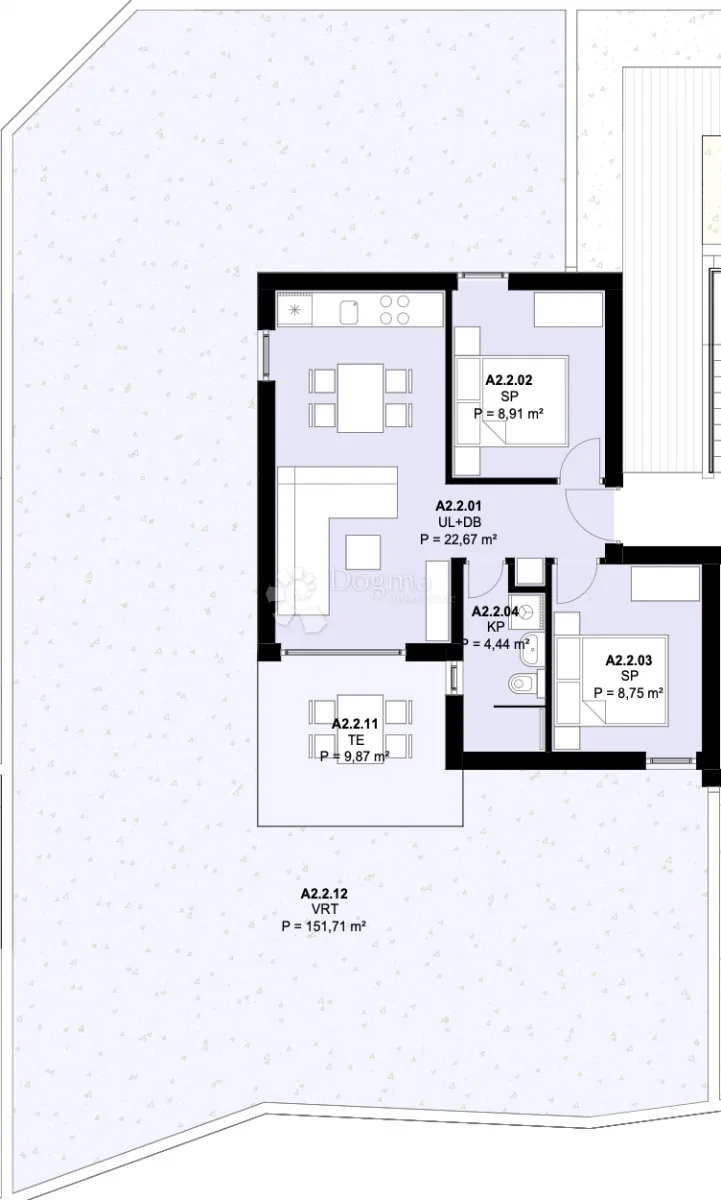 ** JOSIPA COLNAGO ** 095 37 37 812 ** U ponudi je stan A2.2 u prizemlju moderne novogradnje u Kaštel Novom (Rudine), jugoistočne orijentacije, s otvorenim pogledom na more, Kaštelanski zaljev, Split i Trogir. Stan se sastoji od dvije spavaće sobe, dnevnog boravka s kuhinjom i blagovaonicom u open space konceptu, jedne kupaonice, balkona površine 9,87 m² te prostranog vrta od 151,71 m², idealnog za dodatni komfor i boravak na otvorenom. U cijenu stana uključeno je jedno parkirno mjesto. Lokacija: * vrtić 20 m * buduća osnovna škola 100 m * trgovina i kafić 30 m * planirano proširenje pristupne ceste Stan se nalazi cca 900 m iznad Kaštelanske brze ceste, što osigurava mir, privatnost i trajno otvoren pogled. Kvaliteta gradnje i opreme: * sanitarije: Ideal Standard i Villeroy & Boch * stolarija: Porta Doors, troslojno staklo (Galen 9000) * toplinska i zvučna izolacija: 12 cm kamena vuna * svi objekti spojeni na kanalizaciju Kupcu je omogućeno biranje završnih materijala i sanitarija u Ferotermu, unutar predviđenog budžeta (uključeno u cijenu). Planirano: * početak gradnje: rujan 2025. * završetak: druga polovica 2027. Mogućnost predugovora i obročnog plaćanja do završetka gradnje. Porezne pogodnosti: * PDV uključen u cijenu * nema poreza na promet nekretnina * povrat 50% PDV-a za kupce mlađe od 45 godina (prva nekretnina) Projekt obuhvaća četiri stambene zgrade u mirnom okruženju, s naglaskom na kvalitetu, funkcionalnost i dugoročnu vrijednost. ID KOD AGENCIJE: ST5345 Josipa Colnago Asistent u posredovanju Mob: 095/373-7812 Tel: +385 21 293 201 E-mail: josipa.colnago@dogma-nekretnine.com www.dogma-dalmacija.com