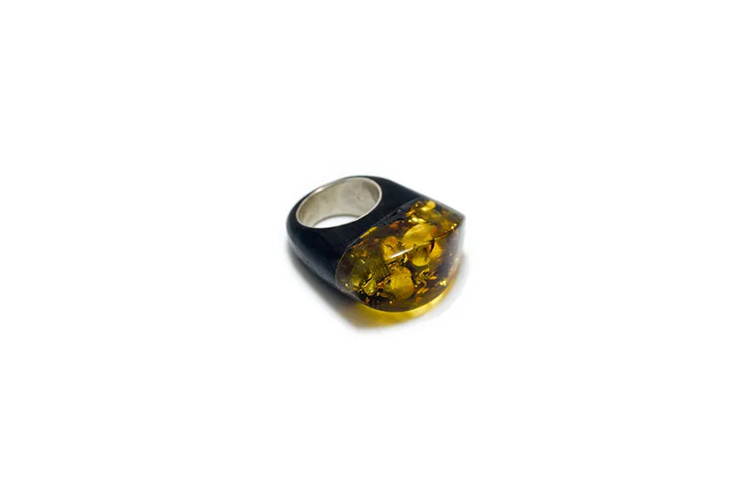 Prsten izrađen od fosilnog hrasta s jantarom.
