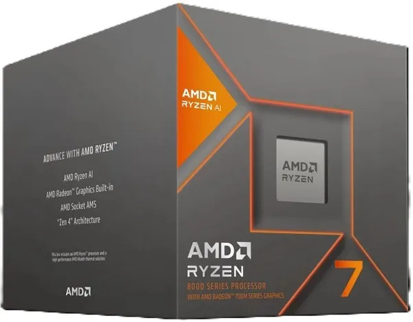 Ryzen 7 8700G, AM5, Radni takt 4.200 MHz, L3 cache 16, TDP 65W, Hladnjak BOX, Integrirani grafički sustav Y, Grafički procesor AMD Radeon 780M, Memory channel 2