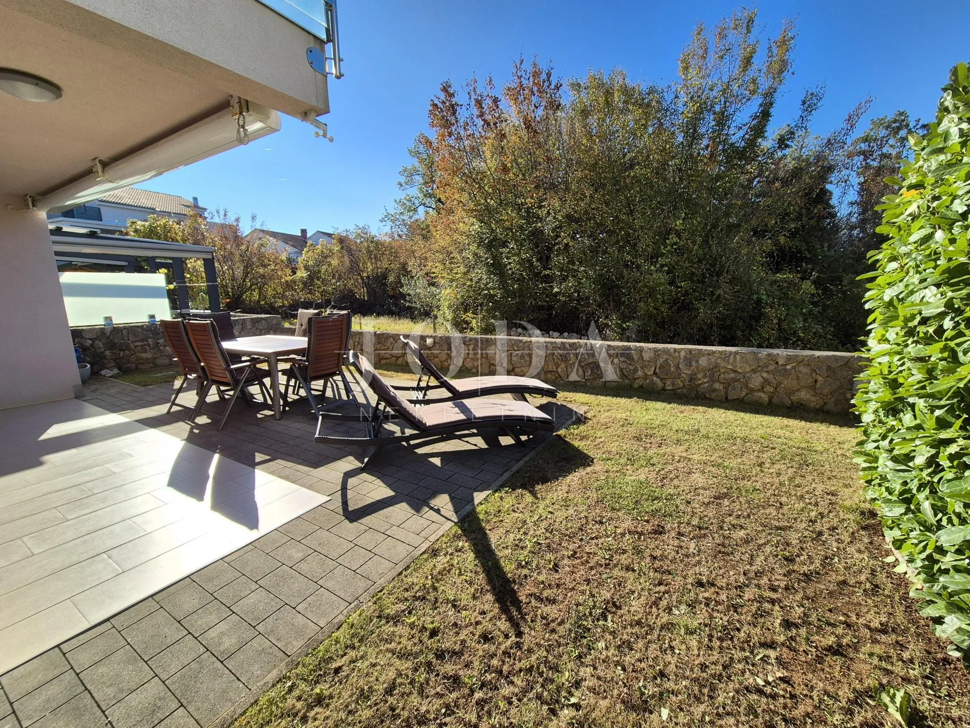 Otok Krk, Njivice, apartman u prizemlju s okućnicom i pogledom na more! Prodaje se apartman u Njivicama površine 43,68 m2 s vlastitom okućnicom. Apartman se nalazi u prizemlju i sastoji se od spavaće sobe, dnevnog boravka s kuhinjom i blagovaonom, kupaone i hodnika. Apartman ima lijepo uređenu okućnicu sa koje se pruža pogled na more, površine 103.94 m2 na kojoj se nalazi ljetna kuhinja. Pripada mu jedno parkirno mjesto i spremište u podrumu površine 2.9 m2. Apartman se prodaje potpuno namješten i spreman za korištenje, a sva dokumentacija je uredna. ID KOD AGENCIJE: EI-7314
