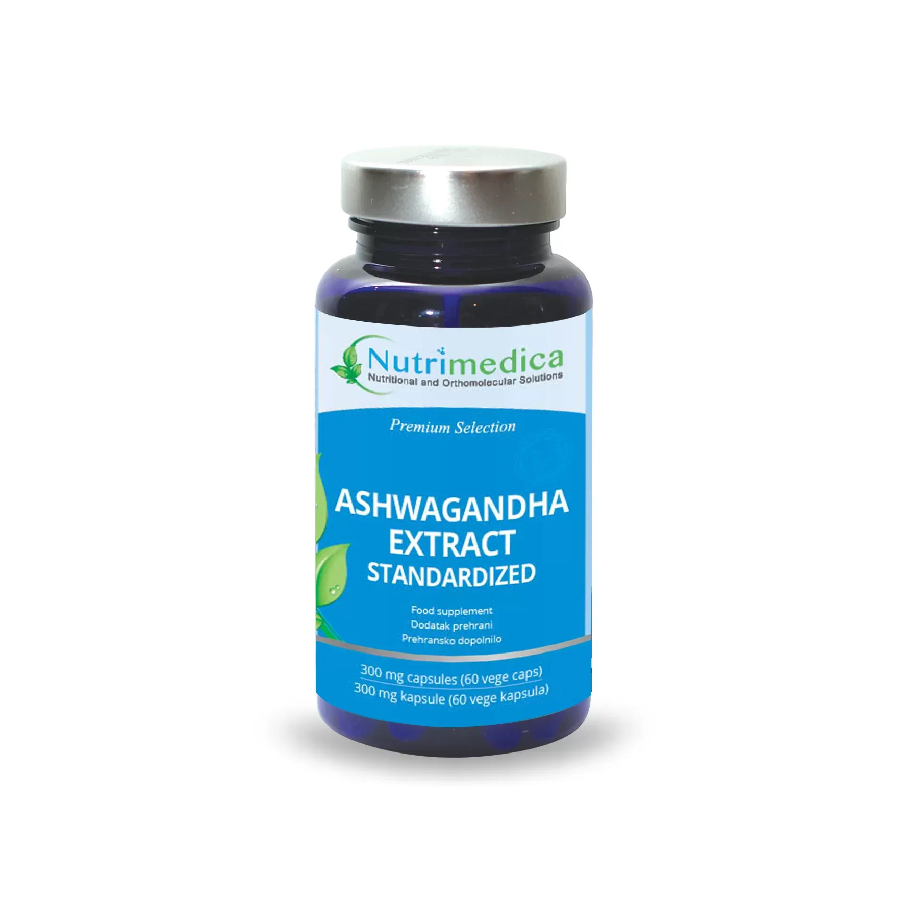 Nutrimedica Ashwagandha kapsule sadrže standardizirani ekstrakt korijena (Withania somnifera) s minimalno 2,5% withanolida, prirodnih aktivnih spojeva koji doprinose adaptogenom djelovanju i podršci normalnoj funkciji hormona stresa. Ashwagandha ekstrakt pomaže u održavanju energije, smanjenju osjećaja umora te podršci mentalnom zdravlju i koncentraciji.