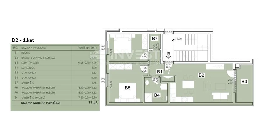 Na atraktivnoj i mirnoj lokaciji u pulskom naselju Šijana prodaje se stan u izgradnji, smješten u sklopu novog, suvremeno projektiranog stambenog kompleksa. Kompleks se sastoji od šest manjih zgrada s ukupno 24 stana, što osigurava ugodno, nenametljivo susjedstvo i visoku razinu privatnosti. Završetak gradnje planiran je za proljeće 2027. godine, a projekt se realizira uz svu potrebnu dokumentaciju i energetsku certifikaciju. Stan oznake D2 nalazi se na prvom katu zgrade te je funkcionalno osmišljen kako bi pružio maksimalnu udobnost i iskoristivost prostora. Ukupna površina iznosi 77,46 m², dok stambeni dio zauzima 68,60 m². Sastoji se od ulaznog hodnika, prostranog dnevnog boravka s kuhinjom i blagovaonicom u open space konceptu, dvije spavaće sobe, kupaonice, ostave i lođe koja pruža dodatni prostor za opuštanje. U prizemlju se nalazi prostrano spremište, a stanu pripadaju i dva vanjska parkirna mjesta u okolišu zgrade. Kvaliteta gradnje i opreme jedan je od glavnih aduta ovog projekta. Zgrade će imati termo-izolacijsku fasadu s visokoučinkovitom toplinskom izolacijom debljine 10 cm, dok su protuprovalna ulazna vrata i PVC vanjska stolarija s dvoslojnim IZO staklom i roletama standard u svim stanovima. Interijeri će biti opremljeni vrhunskom keramikom modernog dizajna, odabranom s naglaskom na dugotrajnost i estetiku, dok će na lođama biti postavljena protuklizna keramika. Ugodna temperatura tijekom cijele godine osigurana je klima-uređajem, uz dodatno električno podno grijanje u dnevnom boravku, kuhinji i kupaonici. Kupaonice su dodatno opremljene električnim radijatorima – sušilima s termostatom, što doprinosi dodatnoj razini komfora. Lokacija u Šijani pruža savršen balans između mirnog stanovanja i blizine svih važnih sadržaja – škole, trgovina, javnog prijevoza i ostalih svakodnevnih potreba nalaze se na dohvat ruke. Kupnja je moguća putem stambenog kredita u suradnji s bankom s kojom investitor ima ugovorenu poslovnu suradnju, kao i kroz obročno plaćanje tijekom faza izgradnje. Prijenos vlasništva i posjeda ostvaruje se nakon ishođenja uporabne dozvole i etažiranja, a kupac je oslobođen plaćanja poreza na promet nekretnina od 3%. Ovaj stan predstavlja izvrsnu priliku za kupce koji traže kvalitetnu novogradnju, funkcionalan raspored i sigurnu dugoročnu investiciju u jednom od najpoželjnijih dijelova Pule. Stan oznake D4 - istog tlocrta i rasporeda, te slične kvadrature, također je dostupan na drugom, ujedno i zadnjem katu iste zgrade, po istoj cijeni iskazanoj u ovom oglasu, pružajući kupcima mogućnost odabira kata prema vlastitim željama. Za sva dodatna pitanja i dogovor za razgledavanje, obratite nam se s povjerenjem. ID KOD AGENCIJE: 2033 Anais Naimarević Ramljak Mob: +385 99 825 2485 Tel: +385 52 33 00 33 E-mail: anais@investa.hr www.investa.hr