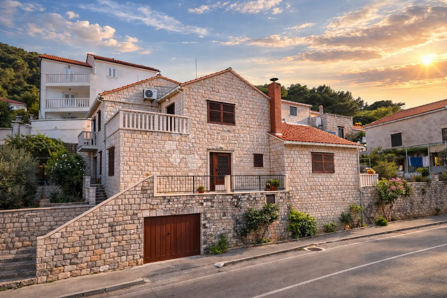 ** JOSIPA COLNAGO ** +385 95 37 37 812 ** Smještena u autentičnom kamenome ambijentu mjesta Pučišća na otoku Braču, gdje se mediteranska priroda, mir i tradicionalna dalmatinska arhitektura prirodno isprepliću, ova samostojeća kuća predstavlja sklad privatnosti, funkcionalnosti i otočkog načina života. Okružena uređenim vrtovima i udaljena svega nekoliko minuta hoda od centra mjesta, nekretnina pruža idealan balans između svakodnevne praktičnosti i opuštenog mediteranskog okruženja. Kuća je izgrađena na zemljištu površine 373 m² te raspolaže s ukupno 182 m² stambenog prostora raspoređenog na tri etaže — dvije stambene razine, garažni prostor i tavan. Arhitektura objekta naglašava prirodno svjetlo, kamen kao dominantan materijal i skladan prijelaz između unutarnjeg i vanjskog prostora. Prizemlje ukupne površine 112 m² sastoji se od prostranog dnevnog boravka, blagovaonice, kuhinje, jedne spavaće sobe, radne sobe te kupaonice. Raspored prostorija omogućuje ugodan boravak, kako za svakodnevni život tako i za druženja i boravak većeg broja osoba. Na gornjoj etaži, površine 70 m², nalaze se tri spavaće sobe s kupaonicom i izlazom na terasu površine 11 m² koja pruža prostor za odmor na otvorenom. Etaže su povezane komfornim unutarnjim kamenim stubištem koje dodatno naglašava autentičan karakter kuće. Iznad stambenog dijela nalazi se tavan dostupan iz unutrašnjosti i izvana, pogodan za spremište ili buduću prenamjenu prema potrebama vlasnika. Vanjski prostor podijeljen je na uređene vrtne cjeline. Istočni vrt krase nasadi kivija i ukrasno cvijeće, dok se na zapadnoj strani nalaze smokva i vinova loza, stvarajući pravi mediteranski ugođaj. Južno dvorište s vanjskim kaminom pruža idealno mjesto za boravak na otvorenom, objedovanje i druženja tijekom cijele godine. U sklopu nekretnine nalazi se garaža površine 40 m² s jednim parkirnim mjestom, dok je ispred kuće omogućeno dodatno parkiranje više vozila. Nekretnina ima direktan pristup automobilom, što dodatno povećava praktičnost korištenja. Kuća je udaljena svega pet minuta hoda od centra Pučišća gdje se nalaze svi potrebni sadržaji trgovine, ugostiteljski objekti, dom zdravlja, ljekarna i ostala infrastruktura. Lokacija pruža mirno rezidencijalno okruženje uz potpunu dostupnost svih sadržaja, čineći nekretninu pogodnom kako za stalno stanovanje tako i za luksuzni otočki odmor. ID KOD AGENCIJE: ST5005 Josipa Colnago Asistent u posredovanju Mob: 095/373-7812 Tel: +385 21 293 201 E-mail: josipa.colnago@dogma-nekretnine.com www.dogma-dalmacija.com
