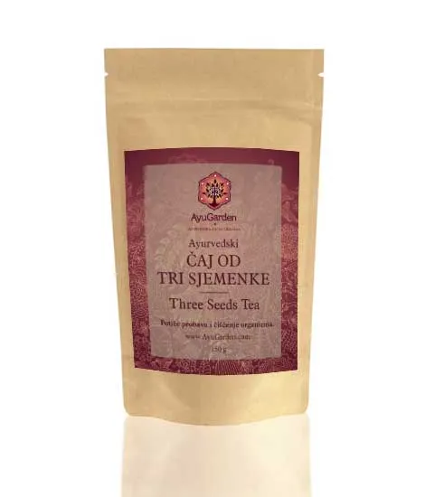 Čaj od tri sjemenke – Kumin, Korijander i Koromač – jedan je od najpopularnijih čajeva u Ayurvedi. Ima blagotvorni učinak na ublažavanje kiseline u želucu i umirivanje gastritisa, doprinosi ublažavanju nadutosti. Smatra se da njeguje stjenke želuca, i želudac u cijelosti.