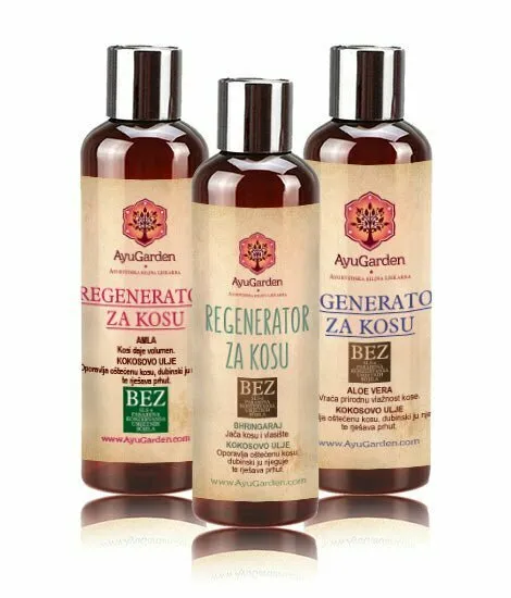 AyuGarden potpuno prirodni ayurvedski regeneratori dubinski njeguju kosu, vraćaju joj prirodni sjaj te hrane vlasi i korijen kose.