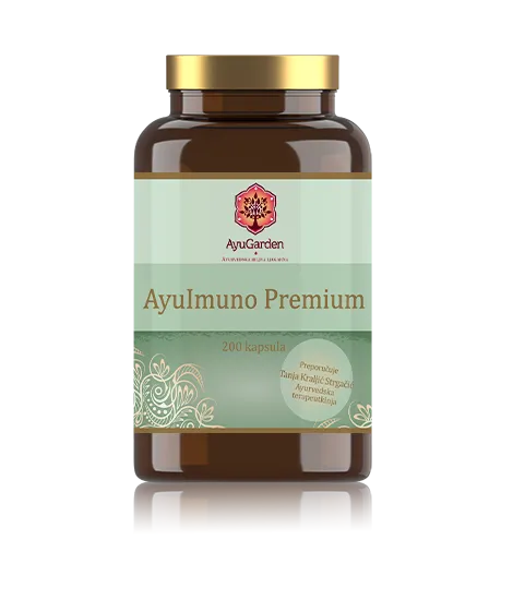 AyuImuno mješavina ayurvedskih biljaka objedinjuje najsnažnije ayurvedske biljke za jačanje imuniteta: Kalmegh, Amla, Tulsi, Ashwagandha, Guduchi, Đumbir, Moringa i Kurkuma. Ayuimuno stoga snažno doprinosi jačanju organizma i osnažuje njegovu obranu i samozaštitu od patogena.