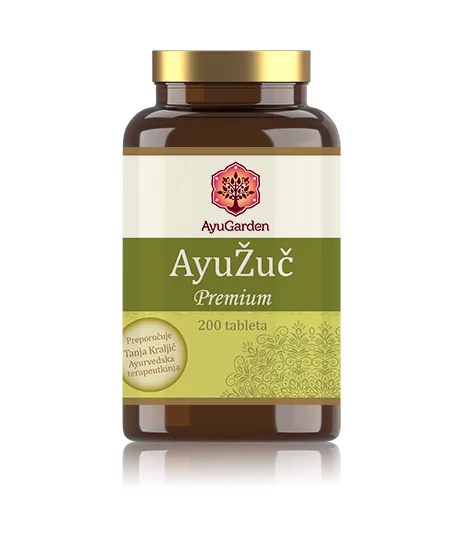 AyuŽuč je mješavina probranih ayurvedskih biljaka za smirivanje problema s žuči. Ova mješavina, svojim protuupalnim i analgetskim svojstvima (Guduchi, Vasa, Shuddha Guggul), doprinosi ublažavanju problema s gihtom, edemima. AyuŽuč pomaže u održavanju zdrave razine mokraćne kiseline. AyuŽuč mješavina korisna je u razgradnji žućnih kamenaca i zdravom protoku žući.