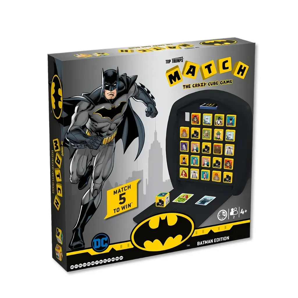 Vrijeme je da navučete masku heroja i složite pet identičnih kocki u nizu u ovom uzbudljivom novom izdanju Top Trumps Matcha s Batmanom! Mislite da možete poredati pet istih likova u nizu prije vašeg protivnika? Gotham City ovisi o vama. Pridružite se Batmanu, Robinu, Catwoman, Riddleru, Poison Ivy i samom Jokeru u ovoj ludoj igri s kockama.