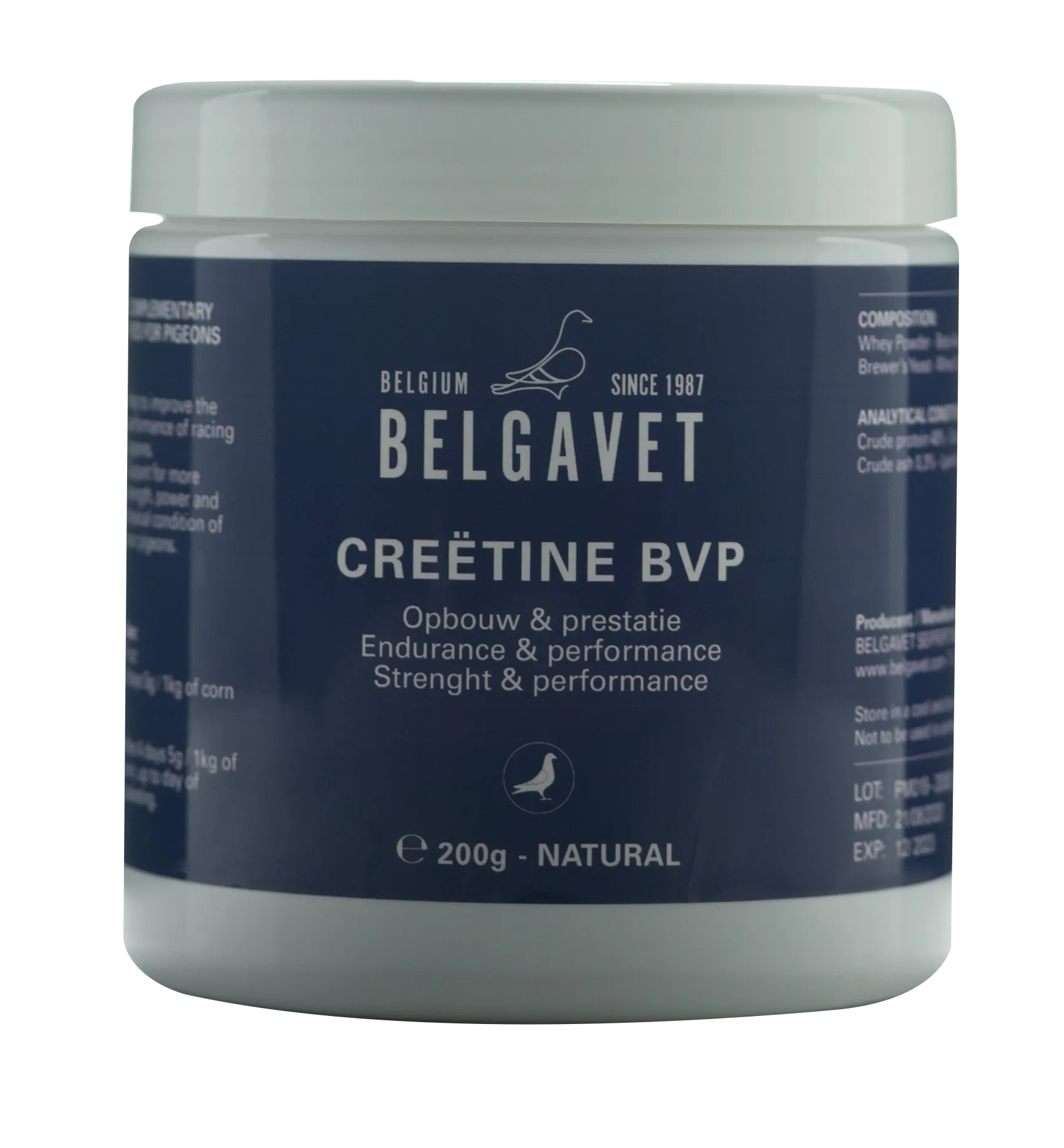Belgavet Creetine Complex BVP za golubove je visokokvalitetni dodatak ishrani koji poboljšava izdržljivost i snagu golubova, posebno tokom napornih takmičenja i treninga. Ovaj proizvod sadrži kreatin, koji je ključan za povećanje energetskih rezervi u mišićima i poboljšanje performansi golubova.