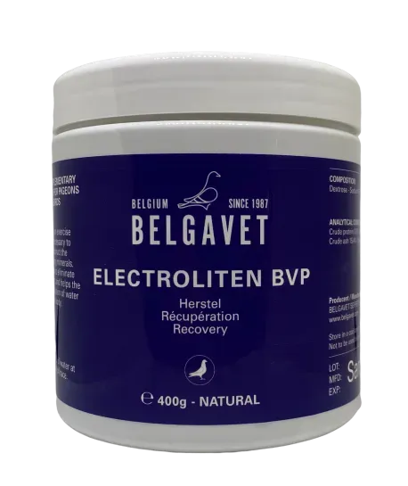 Belgavet Electroliten BVP 400g je prehrambeni dodatak za golubove koji pomaže u održavanju ravnoteže elektrolita, jačanju imuniteta i poboljšanju oporavka nakon fizičkih napora, stresa ili bolesti.