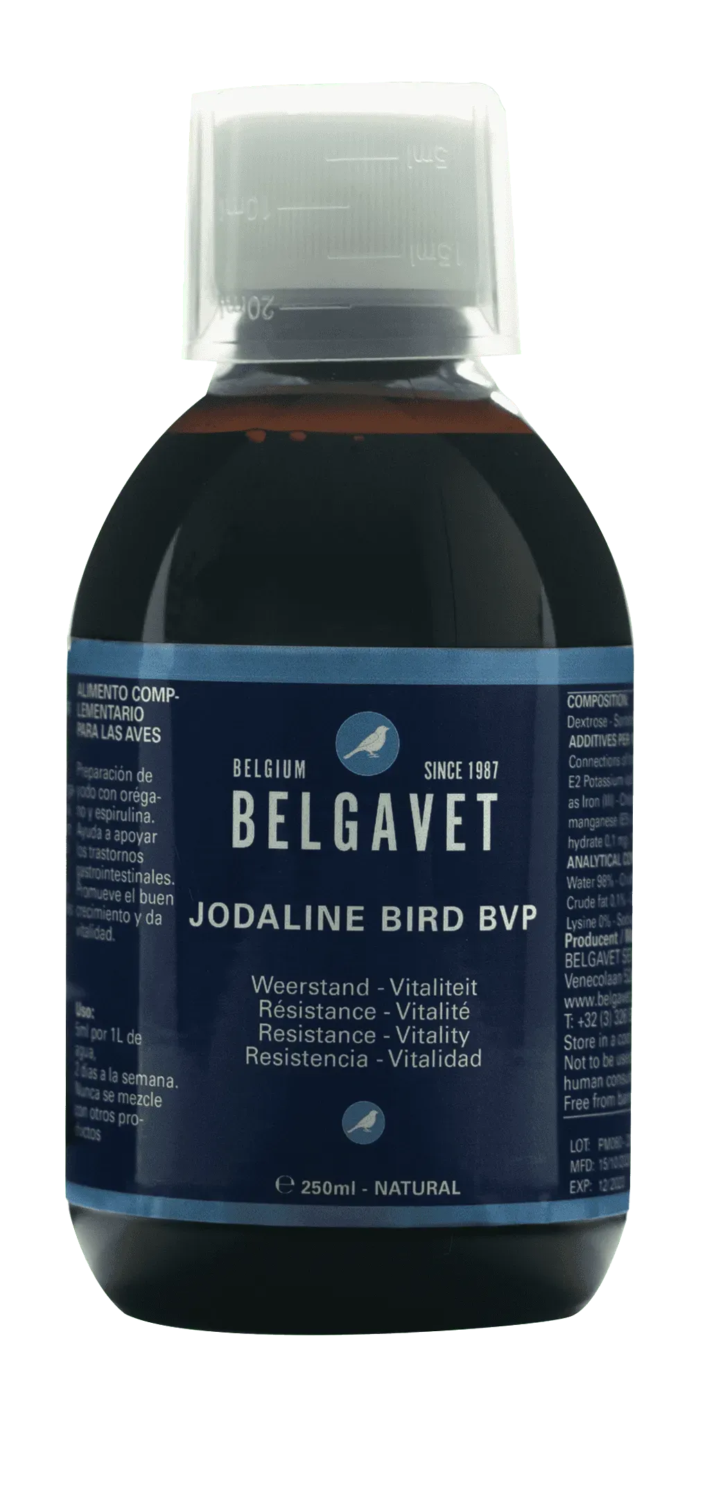 Belgavet JODALINE Bird BVP – 250ml je tekući dodatak joda za ptice koji podržava zdravlje štitnjače i poboljšava opće zdravlje ptica.
