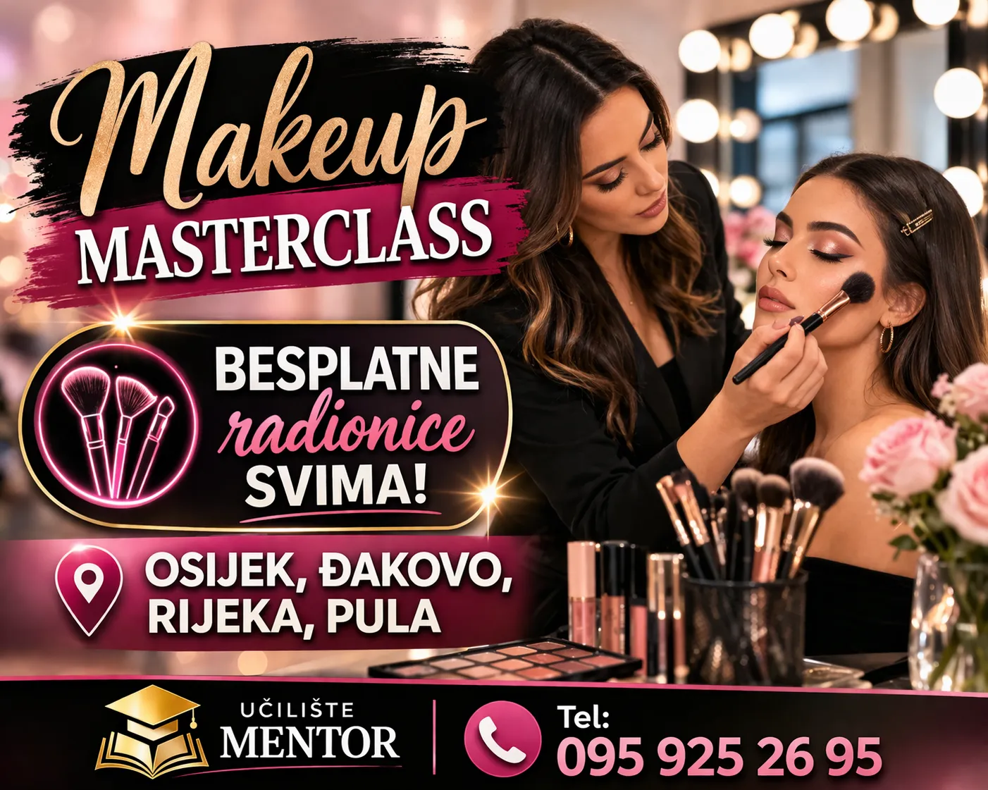 Ti biraš...provjerene mentorice i profesionalne besplatne edukacije s upisom u e-radnu knjižicu kod nas ili skupe vikend tečajeve Makeup-a bez dobivanja certifikata