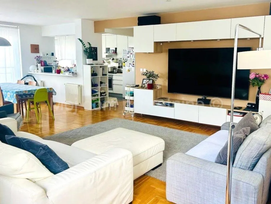Prodaje se prekrasan 4 soban stan s terasom. Nalazi se na 1. katu manje stambene zgrade. Izrazito svijetao zbog svoje višestrane orijentacije. Stan se nalazi u kvalitetnoj zgradi, a opremljen je klima uređajem, protuprovalnim vratima te PVC stolarijom s roletama. Smješten je u blizini svih bitnih sadržaja. Stanu pripadaju garaža (po koef. 10.68m2) te 2 parkirna mjesta ispred garaže (nisu uračunati u kvadraturu). Stambena površina iznosi 121.80m2.