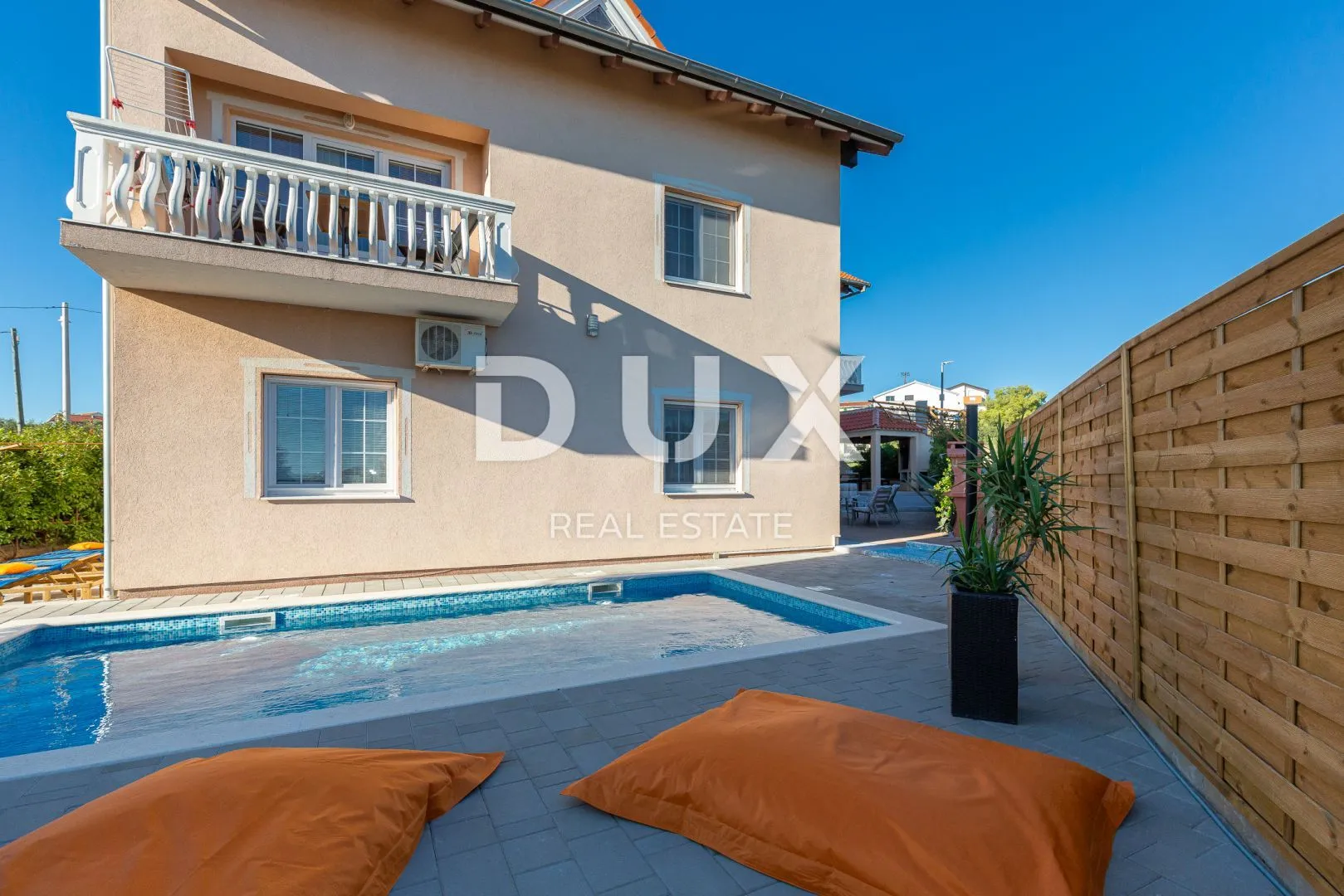 BIOGRAD, SVETI FILIP I JAKOV - Dvojna apartmanska kuća s bazenom i pogledom na more Prodaje se polovica stambeno-poslovne zgrade sa 3 stambene jedinice u Svetom Filipu i Jakovu kraj Biograda na Moru. Objekt stambene površine 200 m2 izgrađen je na parceli od 734m2. Objekt se koristi za turistički najam i poslovanje je dobro uhodano s odličnom ocjenom na portalima za turističko oglašavanje. Svaki od 3 stana je potpuno opremljen i useljiv. U prizemlju i na 1. katu su dvosobni stanovi koji se sastoje od kuhinje, blagovaonice, dnevne sobe, 2 spavaće sobe i kupaonice. Stan na 1. katu ima i balkon. Na 2. katu u potkrovlju se nalazi se jednosoban stan koji se sastoji od kuhinje, blagovaonice, dnevne sobe, jedne spavaće sobe, kupaonice i terase. Stanovi na 1. i 2. katu imaju pogled na more. Sa ovom nekretninom dobivate 3 privatna parkirna mjesta a bazen i vrtna kućica s roštiljem i stubište se dijele sa drugom polovicom kuće. Također, kuća ima zajednički podrumski prostor od 20m2 koji služi kao kotlovnica za grijanje vode za čitav objekt. Instalacije za solarno grijanje su provedene u cijeloj kući. Sveti Filip and Jakov je pitoreskno dalmatinsko mjesto između Zadra i Biograda. Okruženo je prekrasnim plažama, stotinama otoka, 4 nacionalna parka i dva aerodroma (Zadar 30 km i Split 130km). Mediteranska klima osigurava vam preko 150 sunčanih dana u godini tako da objekt ima mogućnost proširenja sezone i izvan ljetnih termina. Lokacijski ova nekretnina nudi mir, privatnost, puno prirode u okruženju međutim sav potreban sadržaj za svakodnevicu nalazi se na 10 do 15 minuta šetnje. Poštovani klijenti, agencijska provizija naplaćuje se u skladu s Općim uvjetima poslovanja www.dux-nekretnine.hr/opci-uvjeti-poslovanja ID KOD AGENCIJE: 33868 Danijela Majdandžić Agent s licencom Mob: +385 98 979 1602 Tel: +385 91 480 8808 E-mail: danijela@dux-dalmacija.com www.dux-dalmacija.com