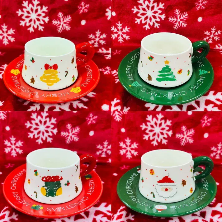 Uživaj u svakom gutljaju omiljenog napitka uz ovu prekrasnu božićnu šalicu s tanjurom! 🎅
