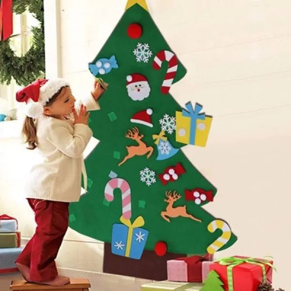 Dekoracija zidova božićnih vrata: Božićno drvce od filca može se pričvrstiti na zid, objesiti na vrata ili se djeca igrati na podu.Savjeti: Ukrasi od božićnog drvca od filca su sklopivi, ako stignu naborani zbog otpreme, glačajte ili poparite stražnji dio i vratit će se u prvobitno stanje.