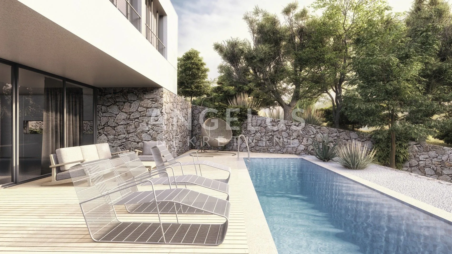 The designed attractive villa for exclusive land meets the highest standards, respecting the imperative of luxury and comfort with a view that ends at the sea and nearby islands, as well as absolute privacy and is ideal for all those who want to enjoy the charms of the Mediterranean lifestyle, far from the busy life.