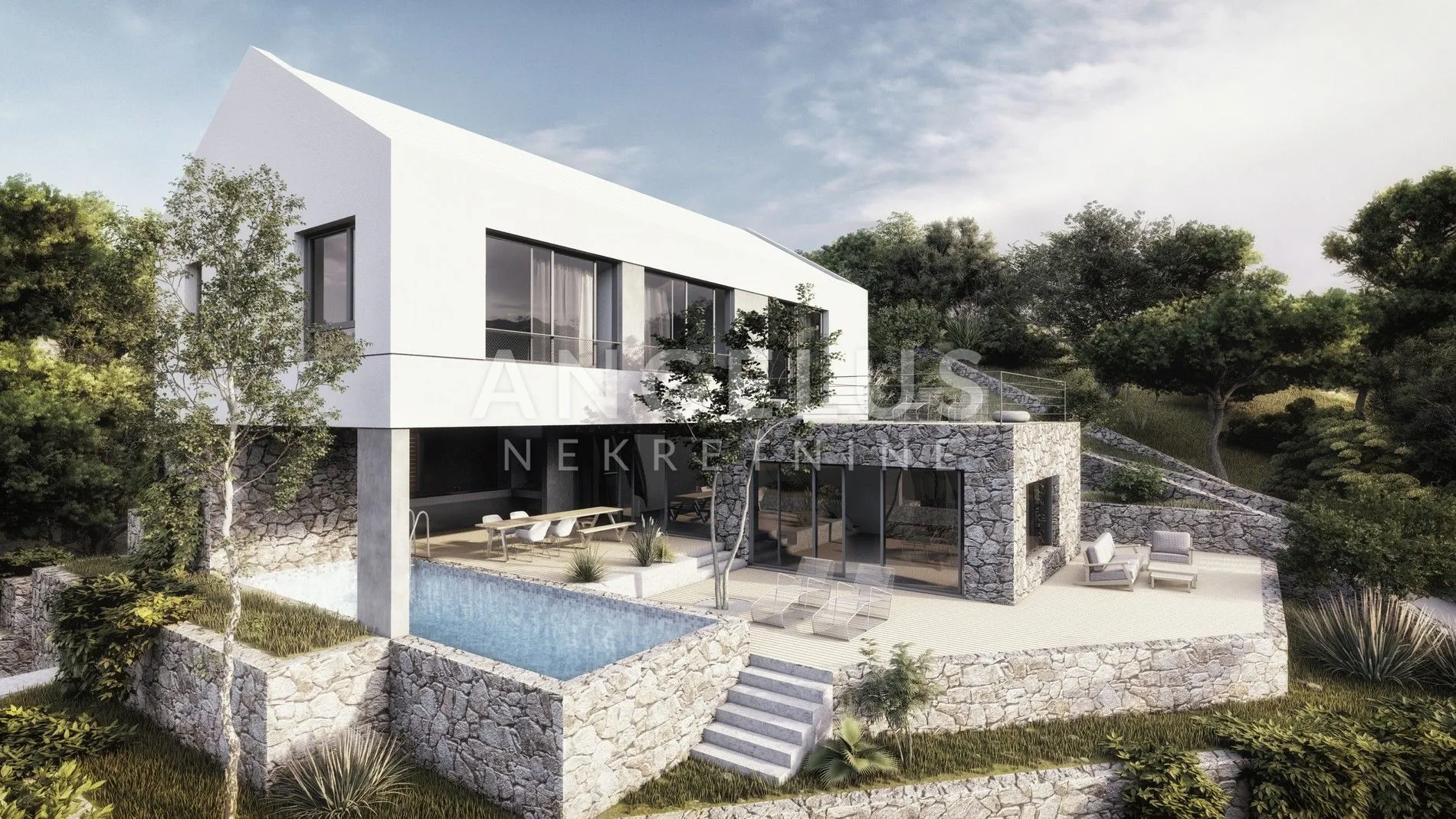 The designed attractive villa for exclusive land meets the highest standards, respecting the imperative of luxury and comfort with a view that ends at the sea and nearby islands, as well as absolute privacy and is ideal for all those who want to enjoy the charms of the Mediterranean lifestyle, far from the busy life.