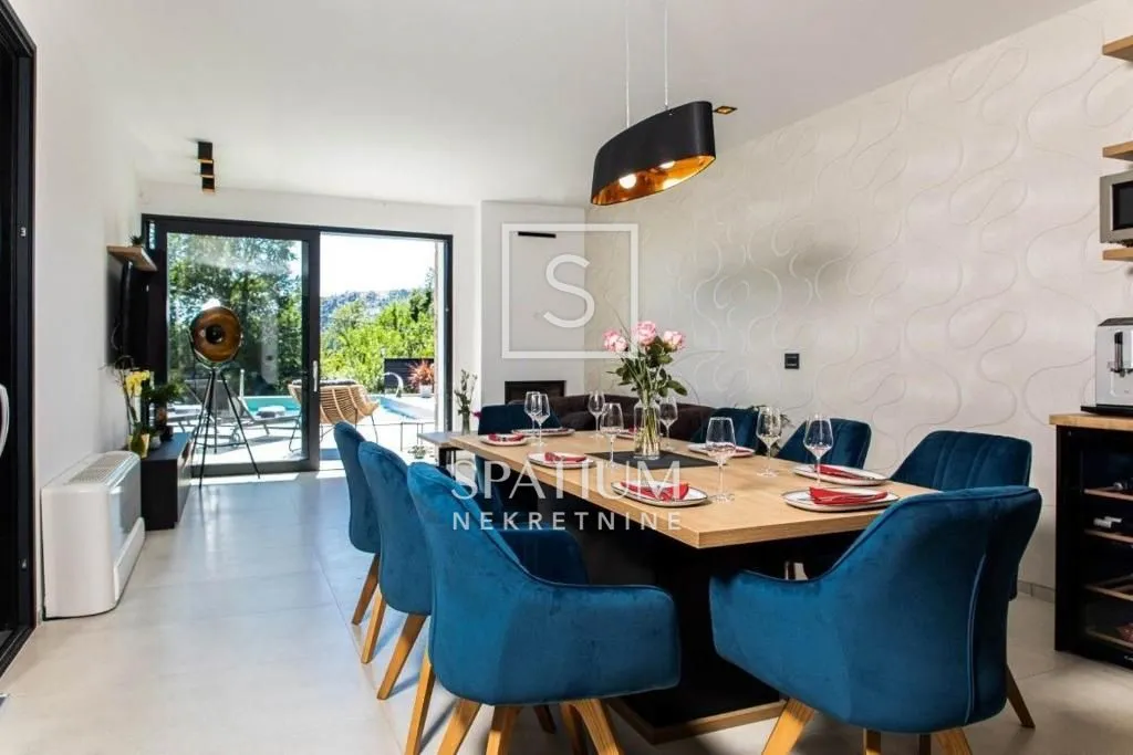 BRIBIR, u ponudu smo dobili luksuznu vilu u mirnom okruženju. Potpuno uređena i moderno namještena, površine 150 m². Smještena na ograđenoj okućnici od 715 m² s grijanim bazenom, dječjim igralištem, parkingom za četiri vozila i stanicom za električno punjenje. U prizemlju kuće su kuhinja, blagovaona i dnevni boravak otvorenog koncepta s izlazom na natkrivenu grill terasu i pogledom na vanjski grijani bazen. Spavaća soba s kupaonom i posebna prostorija sa svom potrebnom tehnikom i perilicom. Unutarnje stubište vodi na kat gdje se nalaze tri spavaće sobe, dvije kupaone, sauna, mali wellness te jacuzzi na terasi. Svaka soba ima izlaz na terasu i prekrasan pogled na okolinu. Dio okućnice čini mediteranski vrt sa sustavom navodnjavanja. Ova moderna nekretnina opremljena je dizalicama topline, podnim grijanjem, centralnim usisavačem, alarmom i video nadzorom, s mogućnošću upravljanja putem pametnog telefona. Povišena i ograđena pruža intimu u potpunosti. Bribir je naselje u Hrvatskoj. Nalazi se između Novog Vinodolskog i Crikvenice, u Vinodolskoj općini. Put do Bribira od smjera mora vodi takozvana "Rajska dolina". Bribir je nekadašnje sjedište krčkih knezova - Frankopana, (sjedište Bribir i Ostrovica) sagrađen je na brijegu gdje je služio kao utvrda. Ostaci starih zidina i gradska kula podsjećaju na vrijeme knezova Frankopana čija je četiri stoljetna vladavina ostavila duboke duhovne i materijalne tragove u Vinodolu. Svoj najveći procvat Bribir doživljava u vrijeme kneza Bernardina Frankopana koji učvršćuje kaštel i gradske zidine. Kada je 1848. godine ukinuto bribirsko vlastelinstvo općinska vlast je porušila Vela i Mala vrata i kaštel, a na njegovu je mjestu sagrađena škola. Tako je u ruševinama završila duga i slavna povijest bribirske utvrde. Jedini ostatak bribirske utvrde je četverokutna kula iz 1302. godine i dio zidina. S brežuljka na kojem je smješten stari grad puca pogled na dolinu i Novi Vinodolski. Umjetnička renesansna djela u crkvi sv. Petra i Pavla svjedoče o visokoj razini kulturnih i civilizacijskih dosega srednjovjekovnog Bribira i jakim vezama s Europom. Za ostale informacije obratite se s povjerenjem. Mislav Smolčić asistent u posredovanju +385 91 500 6757 mislav@spatium.hr Vesna Smolčić agent s licencom +385 91 571 7682 vesna@spatium.hr Spatium nekretnine +385 51 452 479 info@spatium.hr ID KOD AGENCIJE: 2641 Vesna Smolčić Agent s licencom Mob: +385 91 571 7682 Tel: +385 51 452 479 E-mail: vesna@spatium.hr www.spatium.hr Mislav Smolčić Asistent u posredovanju Mob: +385 91 500 6757 Tel: +385 51 452 479 E-mail: mislav@spatium.hr www.spatium.hr