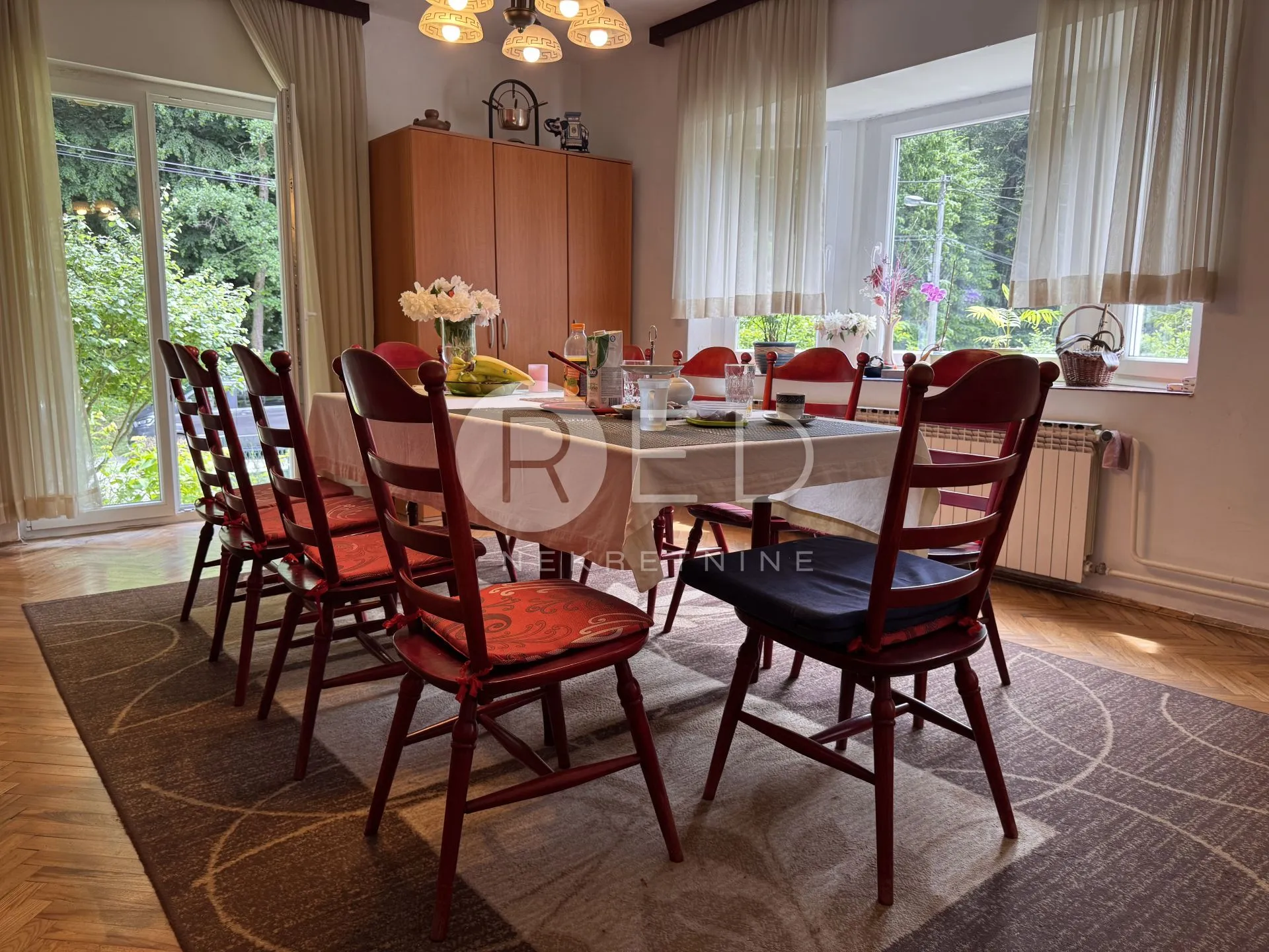 Prodaje se prostrana dvojna kuća s tri etaže – ukupne stambene površine 260 m2. Uporabna dozvola u procesu ishođenja. Na mirnoj i atraktivnoj lokaciji u zapadnom dijelu Zagreba, prodaje se dvojna kuća armirano-betonske konstrukcije izgrađena 1974. godine. Kuća se prostire na tri etaže i idealna je za veću obitelj ili kao investicija za najam. Raspored prostorija: Prizemlje:kuhinja, blagovaonica, kupaonica, ostava i garaža Prvi kat: dnevni boravak, tri spavaće sobe, dvije terase Potkrovlje:blagovaonica, dvije spavaće sobe i balkon Obnavljano: 2010\. godine obojena fasada 2015. postavljena PVC stolarija u prizemlju i na prvom katu 2021. ugrađena nova kuhinja Kuća je funkcionalno raspoređena, svijetla i održavana, s puno potencijala za prilagodbu prema željama budućeg vlasnika. Lokacija i sadržaji: * Osnovna škola udaljena oko 800 metara * Vrtić na manje od 1 km * Trgovački dućan udaljen oko 700 metara * Autobusna stanica na oko 600 metara * Centar grada (Trg bana Jelačića) udaljen je oko 9 km. Vlasništvo uredno. Za više informacija i dogovor oko razgledavanja, slobodno se obratite. Agencijska provizija za kupca iznosi 3 % plus pdv. ID KOD AGENCIJE: 1663 Mario Šarlija Viši savjetnik Mob: 0995068022 E-mail: mario@rednekretnine.com www.rednekretnine.com