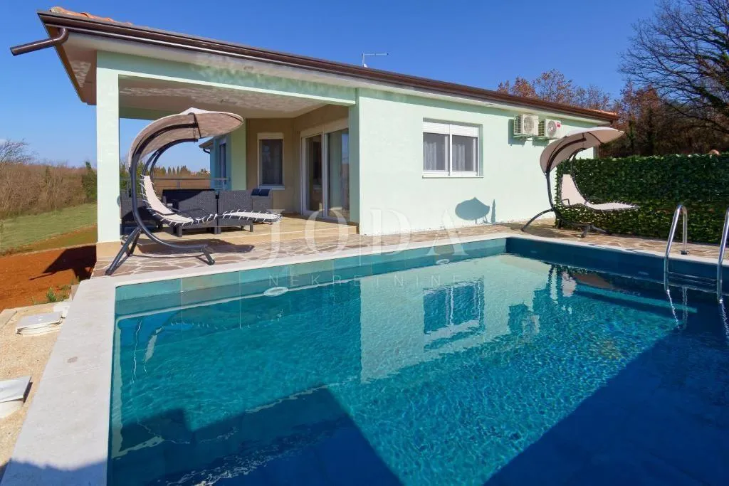 Buje, okolica, prekrasna kuća za odmor sa bazenom Ova prekrasna nekretnina, samostojeća je novoizgrađena kuća smještena usred mirnog istarskog krajolika i idealna je za sve one koji vole mir i tišinu. Udaljena je od mora svega 4,5 kilometara, te 8 kilometara od Aquaparka Istralandia. Ukupne površine od 140 četvornih metara, sastoji se od kuhinje sa blagovaonom, dnevnog boravka, tri spavaće sobe, dvije kupaone i ostave. Kompletno je namještena i opremljena, te se kao takva i prodaje. Iz dnevnog boravka izlazi se na veliku natkrivenu terasu i bazen sa sunčalištem. Na uređenoj okućnici posađene su masline i drugo mediteransko bilje. Ako želite biti u blizini mora i grada, a opet imati svoj mir i tišinu u vlastitom domu, ova je kuća stvorena za Vas. ID KOD AGENCIJE: TR-5782 Josip Šikić, mag.oec Agent s licencom Mob: +385 91 890 4694 Tel: +385 51 403 771 E-mail: info@joda-nekretnine.hr www.joda-nekretnine.hr
