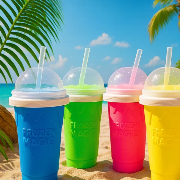 Predstavljamo vam inovativnu preklopnu silikonsku čašu za smoothie – savršeno rješenje za pripremu osvježavajućih napitaka i slastica u trenu, bez potrebe za skupim aparatima. Jednostavno zamrznite čašu, ulijte svoj omiljeni sok ili napitak i nekoliko puta stisnite i za nekoliko minuta dobit ćete savršeni smoothie ili slushy
