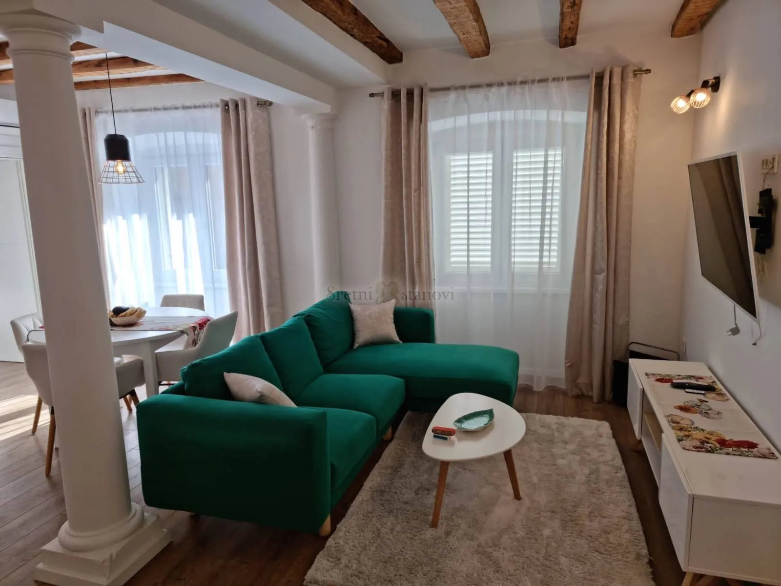 Prekrasno uređen, namješten i u cijelosti opremljen stan u strogom centru grada. Odmah uz Korzo, pored gradske ure, blizu nekoiko garaža. Sastoji se od dvije spavaće sobe, kuhinje s blagovaonom i izdvojenog diskretnog dnevnog dijela, kupaone i hodnika. U stanu su svi uređaji TV, perilica rublja, sušilica, perilica sudja, kao i aparati za kavu, mikrovalna i komplet pribor /suđe za jelo i kuhanje. Sa novom vanjskom i nutarnjom stolarijom, kvaitetnim podnim oblogama i namještajem pruža ugodan boravak Najmoprimcu. Grijanje na klima uređaj i nordijske radijatore. Vrlo osebujan i ugodan stan. Internet je aktivan. Manuela 099 282 7750 ID KOD AGENCIJE: 7328 Manuela Jović Mob: 099 451 2330 Tel: 051/301-502 E-mail: nela@sretnistanovi.hr www.sretnistanovi.hr