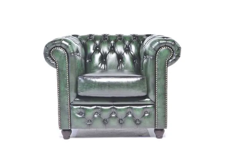 Chesterfield Original leather Fotelja 1-sjedište Wash Off GreenOva fotelja, iz vrhunskog modela Original tvrtke House of Chesterfield, dostupna je u različitim bojama.Majstorova ruka u ovim komadima namještaja od goveđe kože jasno je prepoznatljiva po lijepo izrađenim detaljima, poput zakovica i tapeciranih rukohvata i naslona.Jedan od najvažnijih materijala prilikom proizvodnje kvalitetne Chesterfield sofe je koža. Chesterfield namještaj ručno je izrađen od visokokvalitetne poluanilinske kože, koja se zatim lakira.Duga tradicija zanatskog umijeća vidljiva je kroz udobnost i izgled Originala.Model Chesterfield sofe Original je model koji svi poznajemo kao pravi Chesterfield.Ova kombinacija Chesterfield sofe od goveđe kože također je dostupna i u vintage goveđoj koži i tkanini.Tehnički podaci