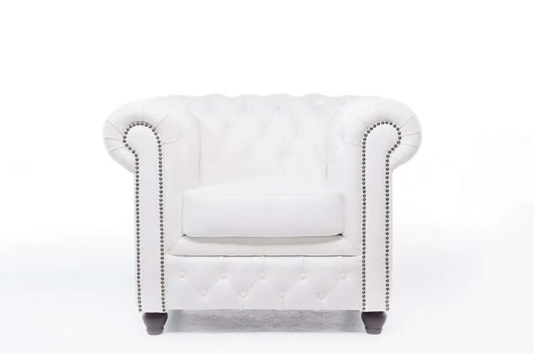Chesterfield Original leather Fotelja 1-sjedište WhiteOva fotelja, iz vrhunskog modela Original tvrtke House of Chesterfield, dostupna je u različitim bojama.Majstorova ruka u ovim komadima namještaja od goveđe kože jasno je prepoznatljiva po lijepo izrađenim detaljima, poput zakovica i tapeciranih rukohvata i naslona.Jedan od najvažnijih materijala prilikom proizvodnje kvalitetne Chesterfield sofe je koža. Chesterfield namještaj ručno je izrađen od visokokvalitetne poluanilinske kože, koja se zatim lakira.Duga tradicija zanatskog umijeća vidljiva je kroz udobnost i izgled Originala.Model Chesterfield sofe Original je model koji svi poznajemo kao pravi Chesterfield.Ova kombinacija Chesterfield sofe od goveđe kože također je dostupna i u vintage goveđoj koži i tkanini.Tehnički podaci