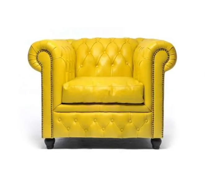 Chesterfield Original leather Fotelja 1-sjedište YellowOva fotelja, iz vrhunskog modela Original tvrtke House of Chesterfield, dostupna je u različitim bojama.Majstorova ruka u ovim komadima namještaja od goveđe kože jasno je prepoznatljiva po lijepo izrađenim detaljima, poput zakovica i tapeciranih rukohvata i naslona.Jedan od najvažnijih materijala prilikom proizvodnje kvalitetne Chesterfield sofe je koža. Chesterfield namještaj ručno je izrađen od visokokvalitetne poluanilinske kože, koja se zatim lakira.Duga tradicija zanatskog umijeća vidljiva je kroz udobnost i izgled Originala.Model Chesterfield sofe Original je model koji svi poznajemo kao pravi Chesterfield.Ova kombinacija Chesterfield sofe od goveđe kože također je dostupna i u vintage goveđoj koži i tkanini.Tehnički podaci