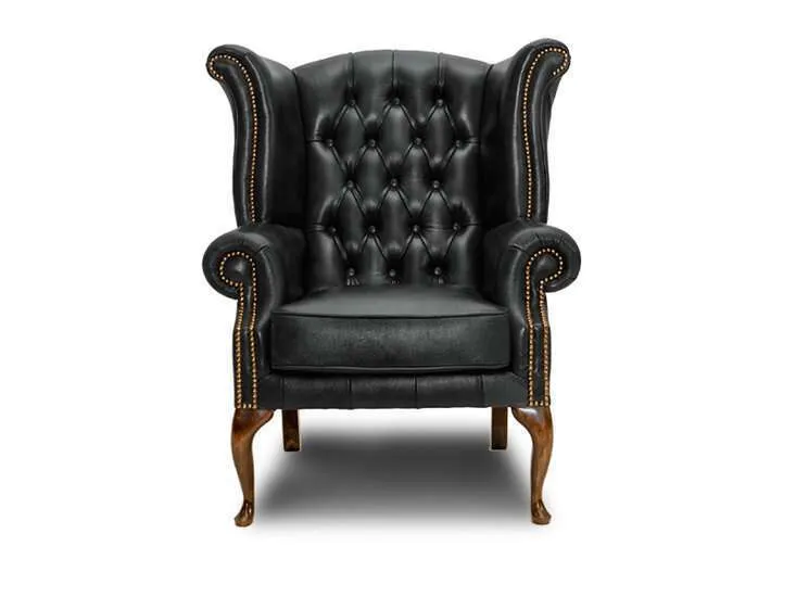 Chesterfield Fotelja Plainwing Leather Matt BlackMajstorova ruka u ovoj fotelji Chesterfield Plainwing od goveđe kože jasno je prepoznatljiva po lijepo izrađenim detaljima, poput zakovica i tapeciranih rukohvata i naslona.Jedan od najvažnijih materijala prilikom proizvodnje kvalitetne Chesterfield fotelje je koža. Chesterfield namještaj ručno je izrađen od visokokvalitetne poluanilinske kože, koja se zatim lakira.Okvir je izrađen od bukovine, koja je zalijepljena i vijčana. Duga tradicija zanatskog umijeća vidljiva je kroz udobnost i izgled Plainwinga.Model Chesterfield fotelje ‘Plainwing’ jedan je od vrhunskih modela Chesterfielda. Ovaj Chesterfield model od kože također je dostupan i u tkanini i vintage koži.Uz svaki komad namještaja standardno se pruža certifikat autentičnosti i jamstvo kvalitete. Tehnički podaci