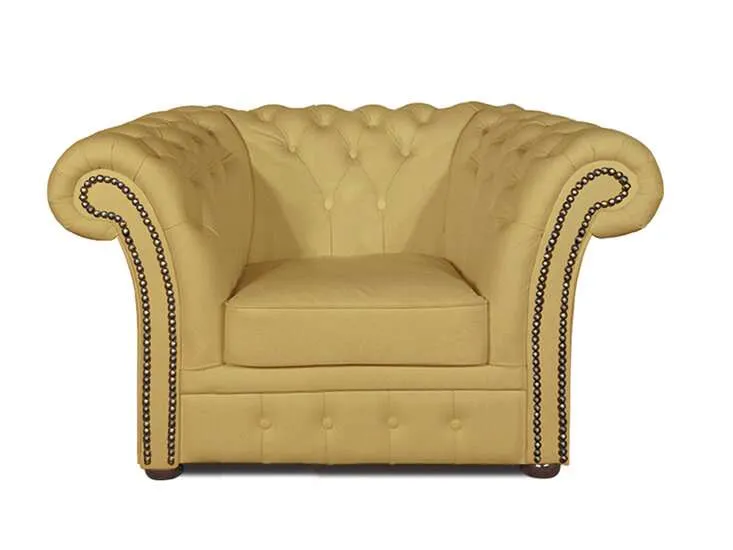 Chesterfield Winfield Basic leather Fotelja 1-sjedište IvoryMajstorova ruka u ovoj Chesterfield fotelji Winfield od goveđe kože jasno je prepoznatljiva po lijepo izrađenim detaljima, poput zakovica i tapeciranih rukohvata i naslona.Jedan od najvažnijih materijala prilikom proizvodnje kvalitetne Chesterfield fotelje je koža. Chesterfield namještaj ručno je izrađen od visokokvalitetne poluanilinske kože, koja se zatim lakira.Okvir je izrađen od bukovine, koja je zalijepljena i vijčana. Duga tradicija zanatskog umijeća vidljiva je kroz udobnost i izgled Winfielda.Model Chesterfield fotelje ‘Winfield’ jedan je od vrhunskih modela Chesterfielda. Ovaj Chesterfield model od goveđe kože također je dostupan i u vintage koži i tkanini.Uz svaki komad namještaja standardno se pruža certifikat autentičnosti i jamstvo kvalitete. Tehnički podaci