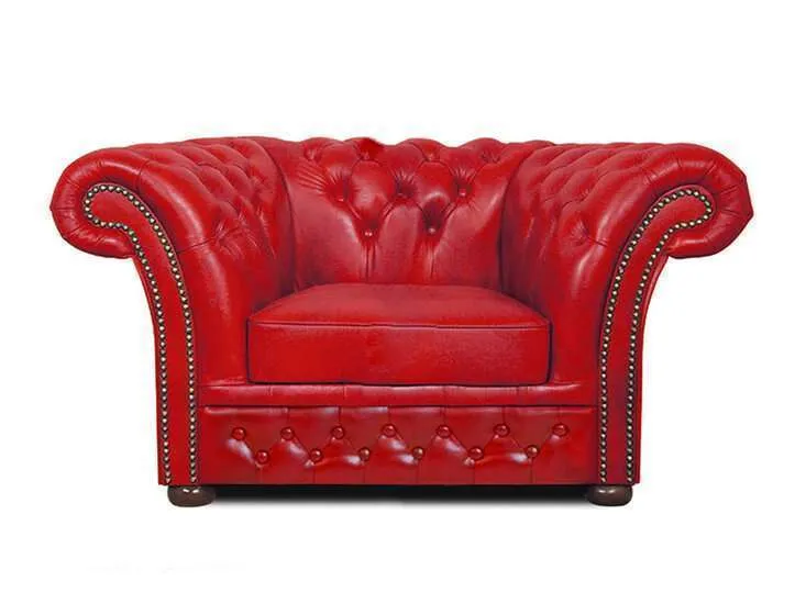 Chesterfield Winfield Basic Luxe leather Fotelja 1-sjedište RedMajstorova ruka u ovoj Chesterfield fotelji Winfield od goveđe kože jasno je prepoznatljiva po lijepo izrađenim detaljima, poput zakovica i tapeciranih rukohvata i naslona.Jedan od najvažnijih materijala prilikom proizvodnje kvalitetne Chesterfield fotelje je koža. Chesterfield namještaj ručno je izrađen od visokokvalitetne poluanilinske kože, koja se zatim lakira.Okvir je izrađen od bukovine, koja je zalijepljena i vijčana. Duga tradicija zanatskog umijeća vidljiva je kroz udobnost i izgled Winfielda.Model Chesterfield fotelje ‘Winfield’ jedan je od vrhunskih modela Chesterfielda. Ovaj Chesterfield model od goveđe kože također je dostupan i u vintage koži i tkanini.Uz svaki komad namještaja standardno se pruža certifikat autentičnosti i jamstvo kvalitete. Tehnički podaci