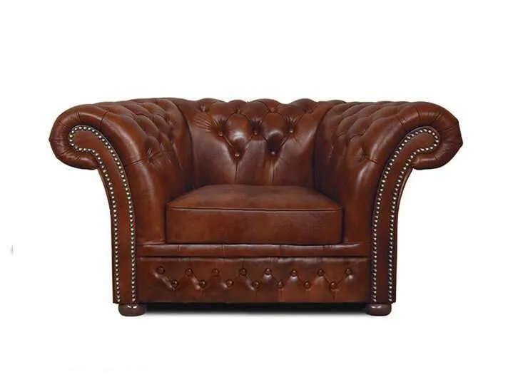 Chesterfield Winfield Basic Luxe leather Fotelja 1-sjedište Cloudy CaramelMajstorova ruka u ovoj Chesterfield fotelji Winfield od goveđe kože jasno je prepoznatljiva po lijepo izrađenim detaljima, poput zakovica i tapeciranih rukohvata i naslona.Jedan od najvažnijih materijala prilikom proizvodnje kvalitetne Chesterfield fotelje je koža. Chesterfield namještaj ručno je izrađen od visokokvalitetne poluanilinske kože, koja se zatim lakira.Okvir je izrađen od bukovine, koja je zalijepljena i vijčana. Duga tradicija zanatskog umijeća vidljiva je kroz udobnost i izgled Winfielda.Model Chesterfield fotelje ‘Winfield’ jedan je od vrhunskih modela Chesterfielda. Ovaj Chesterfield model od goveđe kože također je dostupan i u vintage koži i tkanini.Uz svaki komad namještaja standardno se pruža certifikat autentičnosti i jamstvo kvalitete. Tehnički podaci