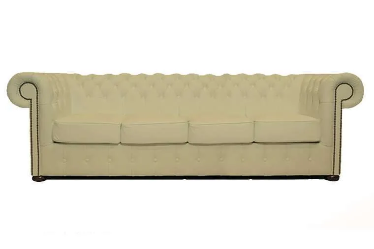 Chesterfield 4-sjedišta sofa Class leather VanillaRuka majstora u ovom Chesterfield kauču od goveđe kože jasno je prepoznatljiva po lijepo završenim detaljima, poput zakovica i tapeciranih rukohvata i naslona.Jedan od najvažnijih materijala prilikom proizvodnje dobrog Chesterfielda je koža. Chesterfield namještaj izrađuje se ručno od visokokvalitetne poluanilinske kože, koja se zatim lakira.Okvir je napravljen od bukovine, koja je zalijepljena i vijčana. Duga tradicija zanatskog umijeća vidljiva je kroz udobnost i izgled ovog Chesterfielda.Model ‘Klasa’ Chesterfield je model koji svi poznajemo kao pravi Chesterfield. Ovaj Chesterfield model dostupan je samo u goveđoj koži i dostupan je kao Klasa i Prva Klasa.Certifikat autentičnosti i premijum garancija pružaju se standardno uz kupnju svakog komada namještaja.Tehnički podaci