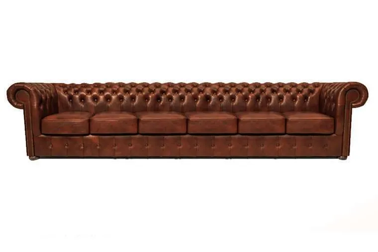 Chesterfield 6-sjedišta sofa Class leather Cloudy Caramel Ruka majstora u ovom Chesterfield kauču od goveđe kože jasno je prepoznatljiva po lijepo završenim detaljima, poput zakovica i tapeciranih rukohvata i naslona. Jedan od najvažnijih materijala prilikom proizvodnje dobrog Chesterfielda je koža. Chesterfield namještaj izrađuje se ručno od visokokvalitetne poluanilinske kože, koja se zatim lakira. Okvir je napravljen od bukovine, koja je zalijepljena i vijčana. Duga tradicija zanatskog umijeća vidljiva je kroz udobnost i izgled ovog Chesterfielda. Model ‘Klasa’ Chesterfield je model koji svi poznajemo kao pravi Chesterfield. Ovaj Chesterfield model dostupan je samo u goveđoj koži i dostupan je kao Klasa i Prva Klasa. Certifikat autentičnosti i premijum garancija pružaju se standardno uz kupnju svakog komada namještaja. Tehnički podaci