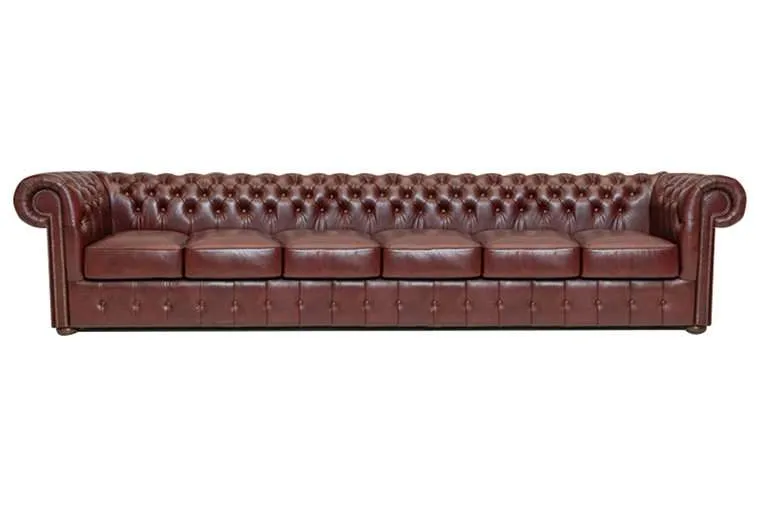 Chesterfield 6-sjedišta sofa Class leather Cloudy Red Ruka majstora u ovom Chesterfield kauču od goveđe kože jasno je prepoznatljiva po lijepo završenim detaljima, poput zakovica i tapeciranih rukohvata i naslona. Jedan od najvažnijih materijala prilikom proizvodnje dobrog Chesterfielda je koža. Chesterfield namještaj izrađuje se ručno od visokokvalitetne poluanilinske kože, koja se zatim lakira. Okvir je napravljen od bukovine, koja je zalijepljena i vijčana. Duga tradicija zanatskog umijeća vidljiva je kroz udobnost i izgled ovog Chesterfielda. Model ‘Klasa’ Chesterfield je model koji svi poznajemo kao pravi Chesterfield. Ovaj Chesterfield model dostupan je samo u goveđoj koži i dostupan je kao Klasa i Prva Klasa. Certifikat autentičnosti i premijum garancija pružaju se standardno uz kupnju svakog komada namještaja. Tehnički podaci