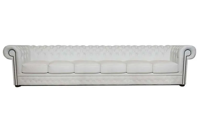 Chesterfield First Class leather 6-sjedišta sofa White Ruka majstora na ovom Chesterfield kauču od goveđe kože prvog razreda jasno je prepoznatljiva po lijepo završenim detaljima, poput zakovica i tapeciranih rukohvata i naslona.Jedan od najvažnijih materijala prilikom proizvodnje dobrog Chesterfield kauča je koža. Chesterfield namještaj izrađuje se ručno od visokokvalitetne polu-anilinske kože, koja se zatim lakira.Okvir je izrađen od bukovog drveta, koje je zalijepljeno i vijčano. Duga tradicija zanatstva vidljiva je kroz udobnost i izgled klase.Chesterfield model ‘First Class’ je model koji svi poznajemo kao pravi Chesterfield. Ovaj Chesterfield model dostupan je samo u goveđoj koži i dostupan je kao Klasa i Prva klasa.Uz svaki komad namještaja standardno se isporučuje certifikat autentičnosti i jamstvo vrhunske kvalitete. Tehnički podaci