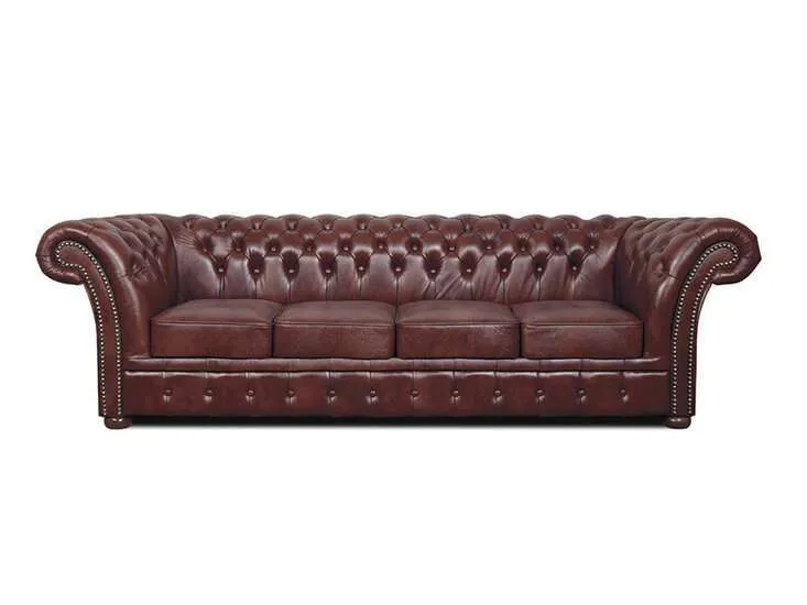 Chesterfield Winfield Basic leather 4-sjedišta sofa Cloudy RedZanatska ruka u ovoj Chesterfield sofi od goveđe kože Winfield jasno je prepoznatljiva po prekrasno završenim detaljima, poput zakovica i udobnih naslona za ruke i leđa.Jedan od najvažnijih materijala pri proizvodnji dobrog Chesterfielda je koža. Namještaj Chesterfield ručno je izrađen od visokokvalitetne polu-anilinske kože, koja se zatim lakira.Okvir je izrađen od bukovog drveta, koje je zalijepljeno i vijčano. Duga tradicija zanatstva vidljiva je kroz udobnost i izgled Winfielda.Chesterfield model ‘Winfield’ je model koji svi poznajemo kao pravi Chesterfield. Ovaj model Chesterfielda od goveđe kože također je dostupan u vintage koži i tkanini.Certifikat autentičnosti i premijsko jamstvo osiguravaju se standardno prilikom kupnje svakog komada namještaja. Tehnički podaci