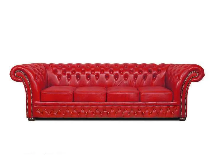 Chesterfield Winfield Basic Luxe leather 4-sjedišta sofa RedZanatska vještina u ovoj Chesterfield sofi od goveđe kože jasno je prepoznatljiva po lijepo završenim detaljima, poput zakovica i presvučenih naslona i leđa.Jedan od najvažnijih materijala pri proizvodnji kvalitetnog Chesterfielda je koža. Chesterfield namještaj izrađuje se ručno od visokokvalitetne poluanilinske kože, koja se zatim lakira.Okvir je izrađen od bukovog drveta, koje je zalijepljeno i vijcima pričvršćeno. Duga tradicija zanatskog umijeća vidljiva je kroz udobnost i izgled Winfielda.Chesterfield model ‘Winfield’ je model koji svi poznajemo kao pravi Chesterfield. Ovaj Chesterfield model od goveđe kože također je dostupan i u vintage koži i tkanini.Uz svaki komad namještaja standardno se isporučuje certifikat autentičnosti i premijerne garancije. Tehničke specifikacije