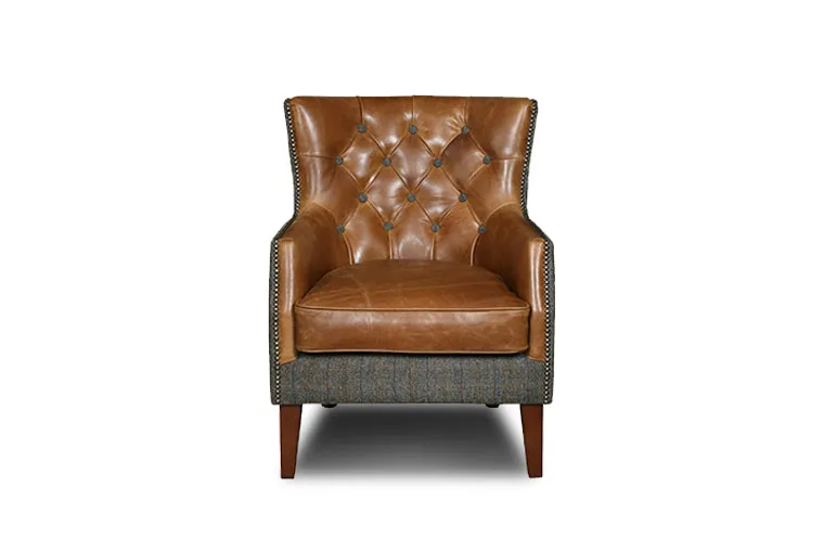 Chesterfield Harris Tweed fotelja Sedum od Tweed vune i goveđe kože