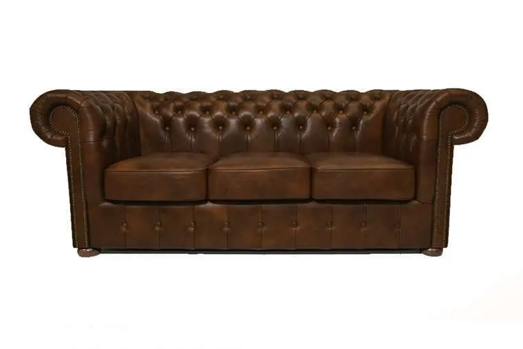 Chesterfield 3-sjedišta sofa Class leather Cloudy Brown LightRuka majstora u ovom Chesterfield kauču od goveđe kože jasno je prepoznatljiva po lijepo završenim detaljima, poput zakovica i tapeciranih rukohvata i naslona.Jedan od najvažnijih materijala prilikom proizvodnje dobrog Chesterfielda je koža. Chesterfield namještaj izrađuje se ručno od visokokvalitetne poluanilinske kože, koja se zatim lakira.Okvir je napravljen od bukovine, koja je zalijepljena i vijčana. Duga tradicija zanatskog umijeća vidljiva je kroz udobnost i izgled ovog Chesterfielda.Model ‘Klasa’ Chesterfield je model koji svi poznajemo kao pravi Chesterfield. Ovaj Chesterfield model dostupan je samo u goveđoj koži i dostupan je kao Klasa i Prva Klasa.Certifikat autentičnosti i premijum garancija pružaju se standardno uz kupnju svakog komada namještaja.Tehnički podaci