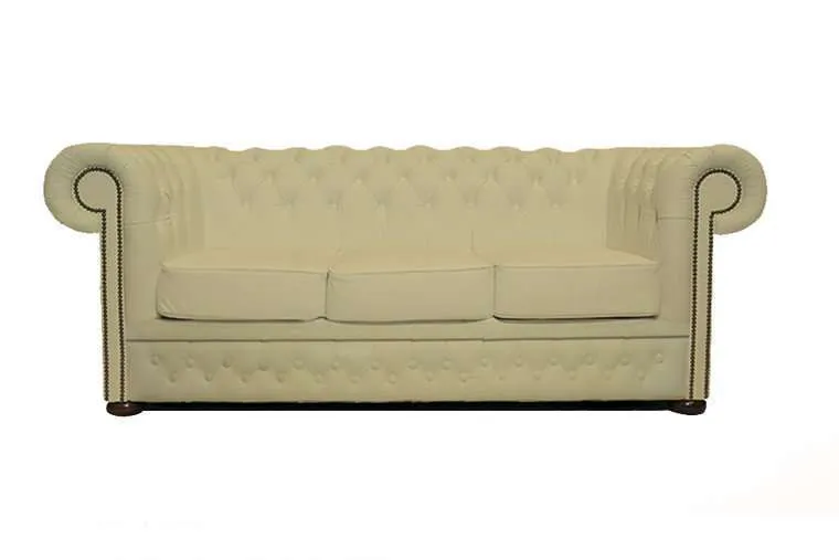Chesterfield 3-sjedišta sofa Class leather VanillaRuka majstora u ovom Chesterfield kauču od goveđe kože jasno je prepoznatljiva po lijepo završenim detaljima, poput zakovica i tapeciranih rukohvata i naslona.Jedan od najvažnijih materijala prilikom proizvodnje dobrog Chesterfielda je koža. Chesterfield namještaj izrađuje se ručno od visokokvalitetne poluanilinske kože, koja se zatim lakira.Okvir je napravljen od bukovine, koja je zalijepljena i vijčana. Duga tradicija zanatskog umijeća vidljiva je kroz udobnost i izgled ovog Chesterfielda.Model ‘Klasa’ Chesterfield je model koji svi poznajemo kao pravi Chesterfield. Ovaj Chesterfield model dostupan je samo u goveđoj koži i dostupan je kao Klasa i Prva Klasa.Certifikat autentičnosti i premijum garancija pružaju se standardno uz kupnju svakog komada namještaja.Tehnički podaci