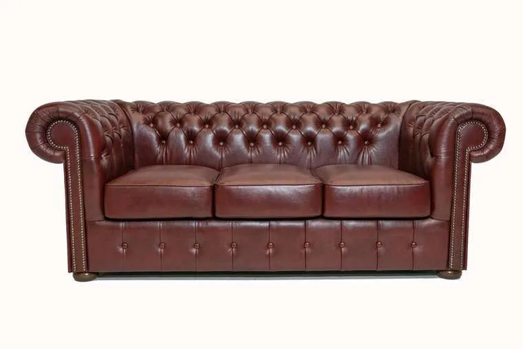 Chesterfield 3-sjedišta sofa Class leather Cloudy RedRuka majstora u ovom Chesterfield kauču od goveđe kože jasno je prepoznatljiva po lijepo završenim detaljima, poput zakovica i tapeciranih rukohvata i naslona.Jedan od najvažnijih materijala prilikom proizvodnje dobrog Chesterfielda je koža. Chesterfield namještaj izrađuje se ručno od visokokvalitetne poluanilinske kože, koja se zatim lakira.Okvir je napravljen od bukovine, koja je zalijepljena i vijčana. Duga tradicija zanatskog umijeća vidljiva je kroz udobnost i izgled ovog Chesterfielda.Model ‘Klasa’ Chesterfield je model koji svi poznajemo kao pravi Chesterfield. Ovaj Chesterfield model dostupan je samo u goveđoj koži i dostupan je kao Klasa i Prva Klasa.Certifikat autentičnosti i premijum garancija pružaju se standardno uz kupnju svakog komada namještaja.Tehnički podaci