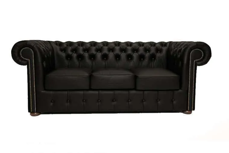 Chesterfield 3-sjedišta sofa Class leather Matt BlackRuka majstora u ovom Chesterfield kauču od goveđe kože jasno je prepoznatljiva po lijepo završenim detaljima, poput zakovica i tapeciranih rukohvata i naslona.Jedan od najvažnijih materijala prilikom proizvodnje dobrog Chesterfielda je koža. Chesterfield namještaj izrađuje se ručno od visokokvalitetne poluanilinske kože, koja se zatim lakira.Okvir je napravljen od bukovine, koja je zalijepljena i vijčana. Duga tradicija zanatskog umijeća vidljiva je kroz udobnost i izgled ovog Chesterfielda.Model ‘Klasa’ Chesterfield je model koji svi poznajemo kao pravi Chesterfield. Ovaj Chesterfield model dostupan je samo u goveđoj koži i dostupan je kao Klasa i Prva Klasa.Certifikat autentičnosti i premijum garancija pružaju se standardno uz kupnju svakog komada namještaja.Tehnički podaci