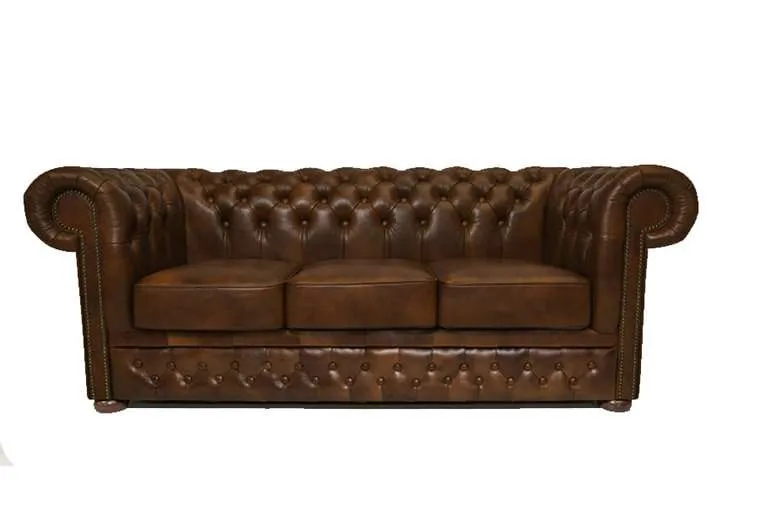 Chesterfield First Class leather 3-sjedišta sofa Cloudy Brown Light Ruka majstora u ovom Chesterfield kauču od goveđe kože prvog razreda jasno je prepoznatljiva po lijepo završenim detaljima, poput zakovica i tapeciranih rukohvata i naslona. Jedan od najvažnijih materijala prilikom proizvodnje dobrog Chesterfielda je koža. Chesterfield namještaj izrađuje se ručno od visokokvalitetne poluanilinske kože, koja se zatim lakira. Okvir je izrađen od bukovine, koja se lijepli i vijča. Duga tradicija zanatstva vidljiva je kroz udobnost i izgled Chesterfielda. Chesterfield model ‘First Class’ je model koji svi prepoznajemo kao pravi Chesterfield. Ovaj model Chesterfielda dostupan je samo u goveđoj koži i dostupan je kao klasa i prva klasa. Potvrda o autentičnosti i jamstvo kvalitete standardni su uz svaki kupljeni komad namještaja. Tehnički podaci